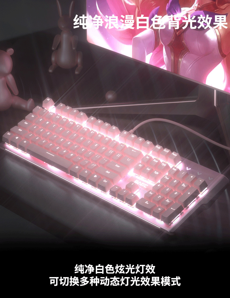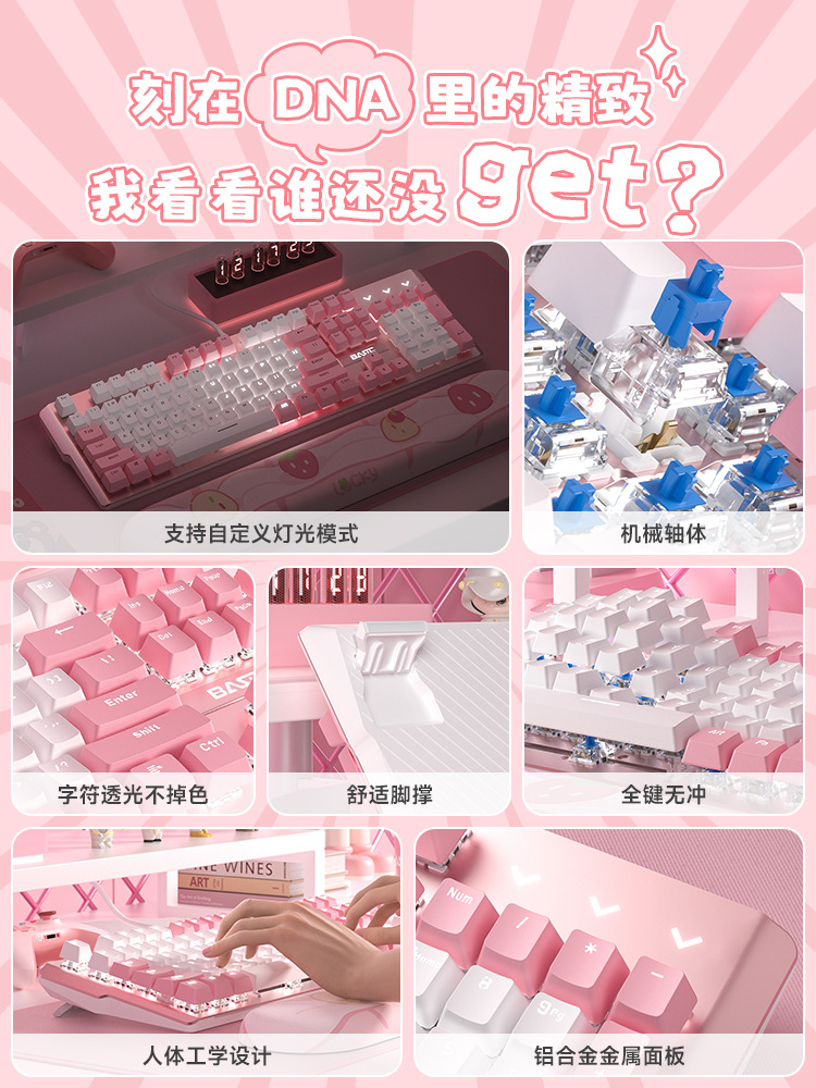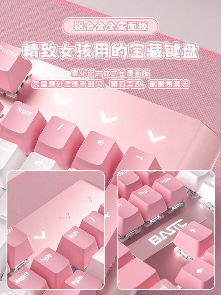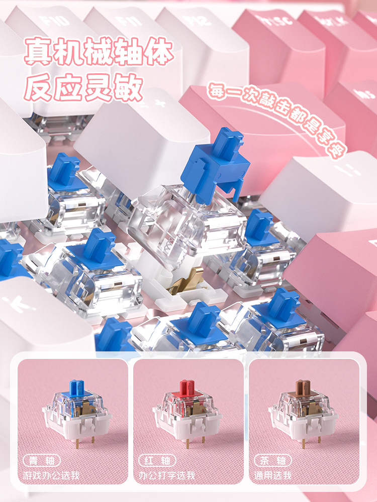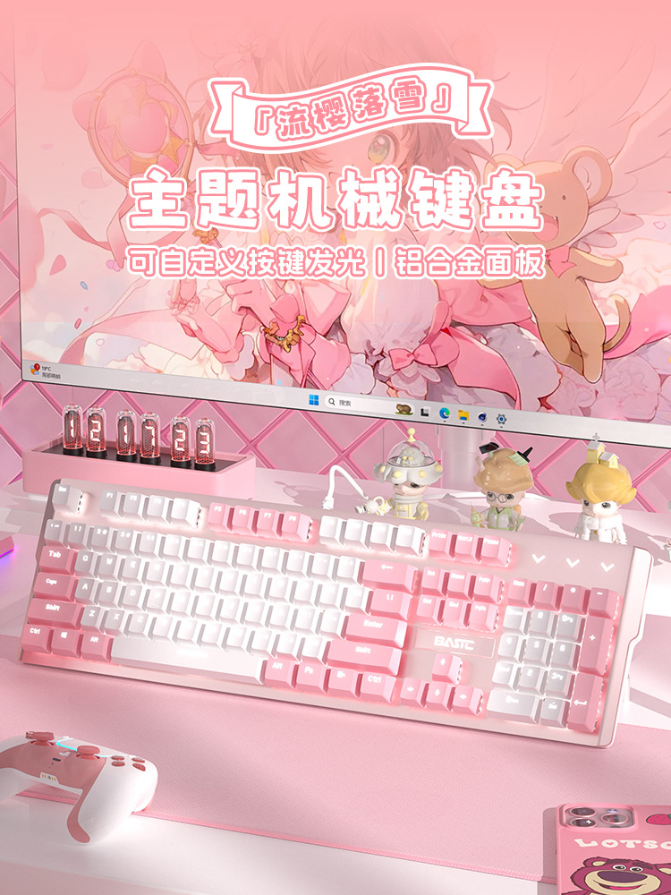 • 화이트 핑크 기계식 키보드(녹색 축) + 핑크 마우스 + 핑크 헤드폰