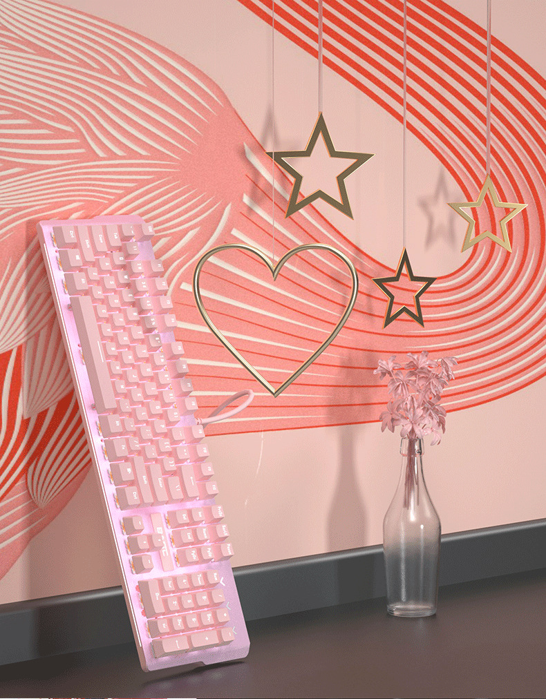 • 핑크색 기계식 키보드(녹색 축) + 핑크색 마우스 + 핑크색 헤드폰