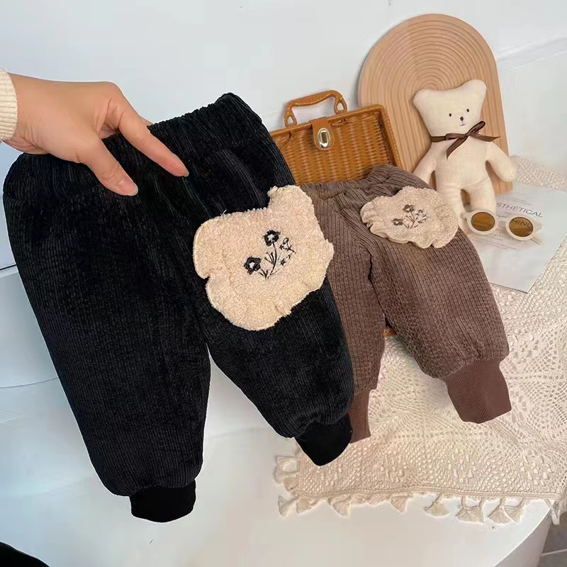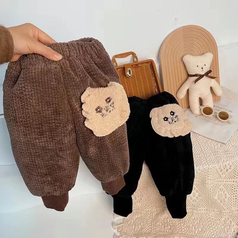 여아 겨울 면 바지 두꺼운 3 단 퀼트 팬츠 기모 따뜻한 바지 한국 스타일 스웨트 팬츠 트렌디 아우터