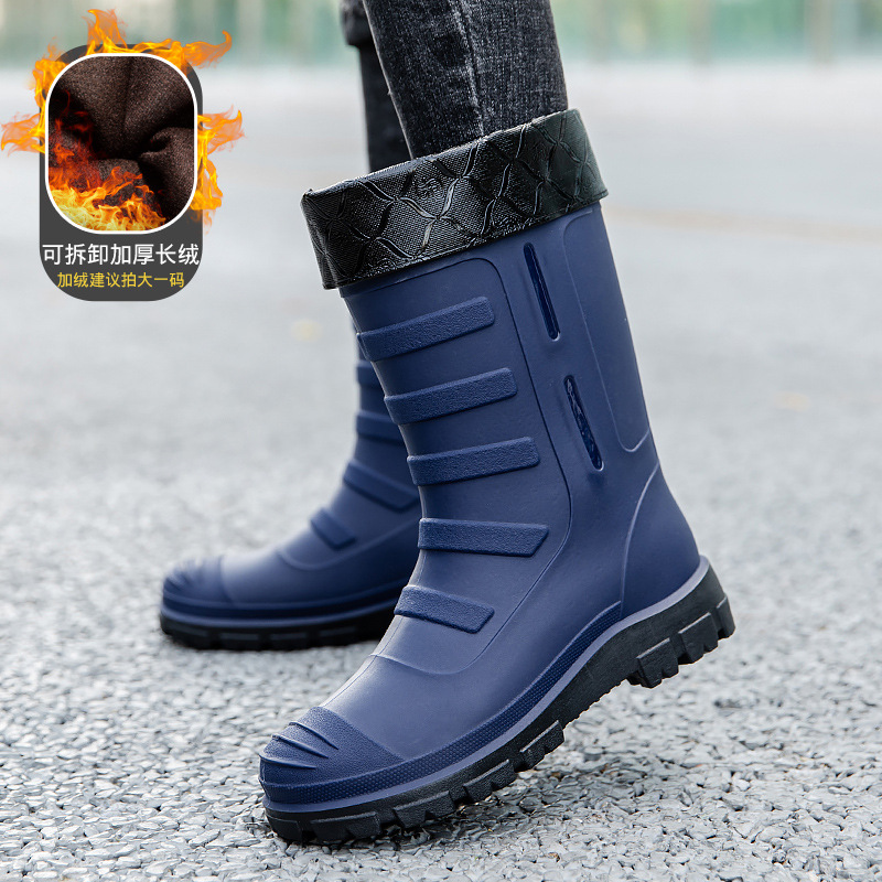 남성용 크로스보더 패션 하이탑 레인부츠, 내마모성, 방수, 미끄럼 방지 신발, 미끄럼 방지 레인부츠, 고무신, 세차, 낚시용 신발, 덧신스토어 가기