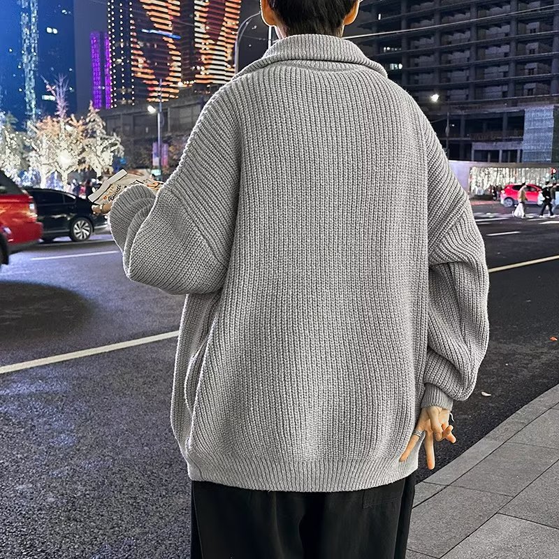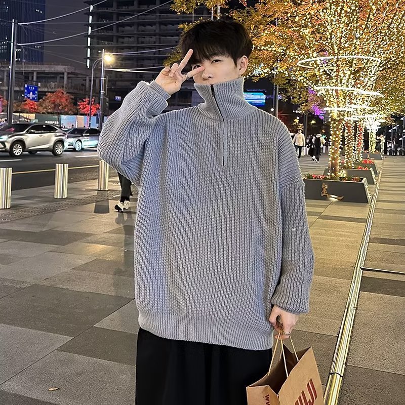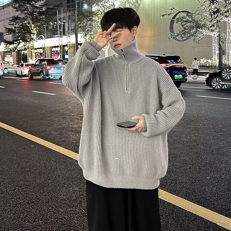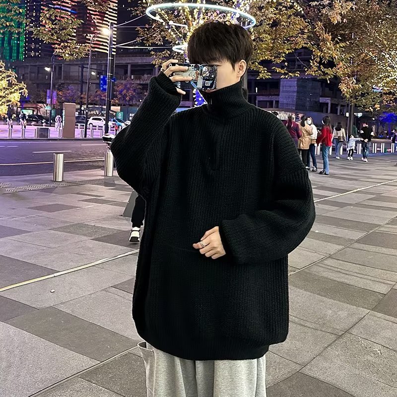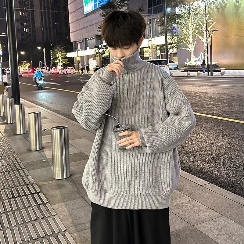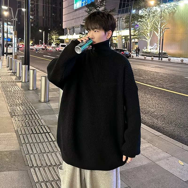 터틀넥 스웨터 남자의 가을과 겨울 새로운 일본 스타일 레트로 하이 스트리트 트렌디 브랜드 니트 스웨터 느슨한 캐주얼 단색 스웨터 재킷스토어 가기