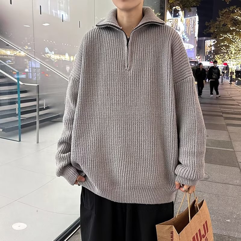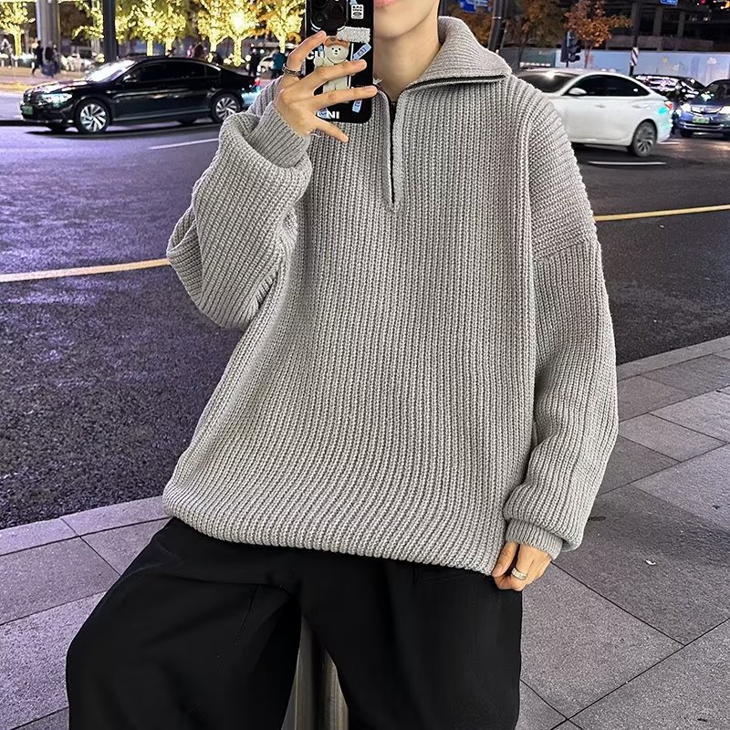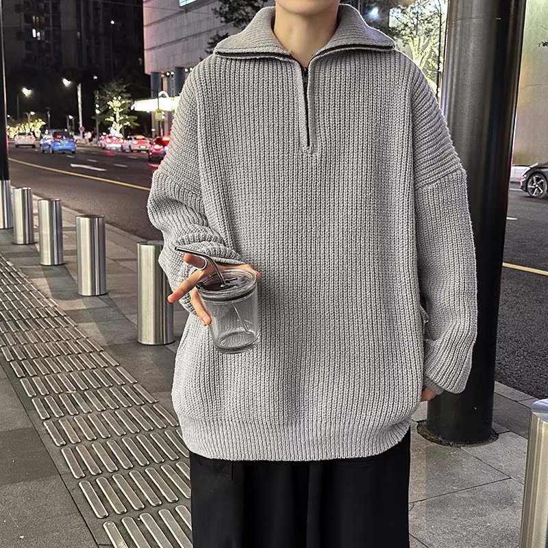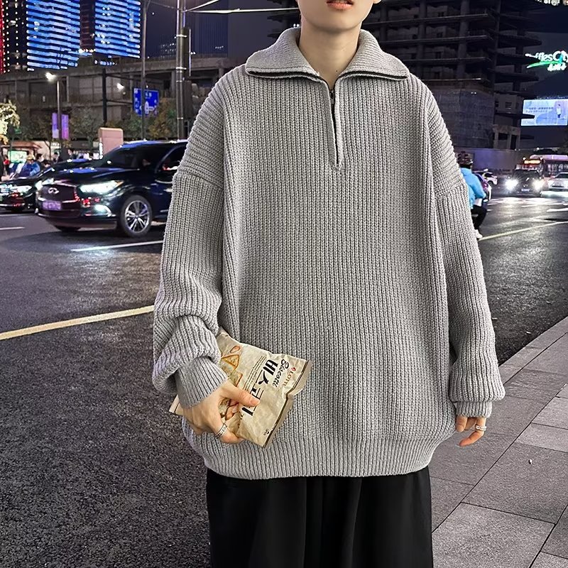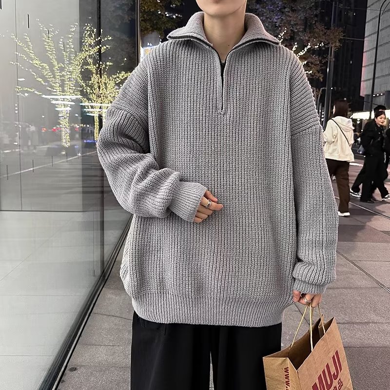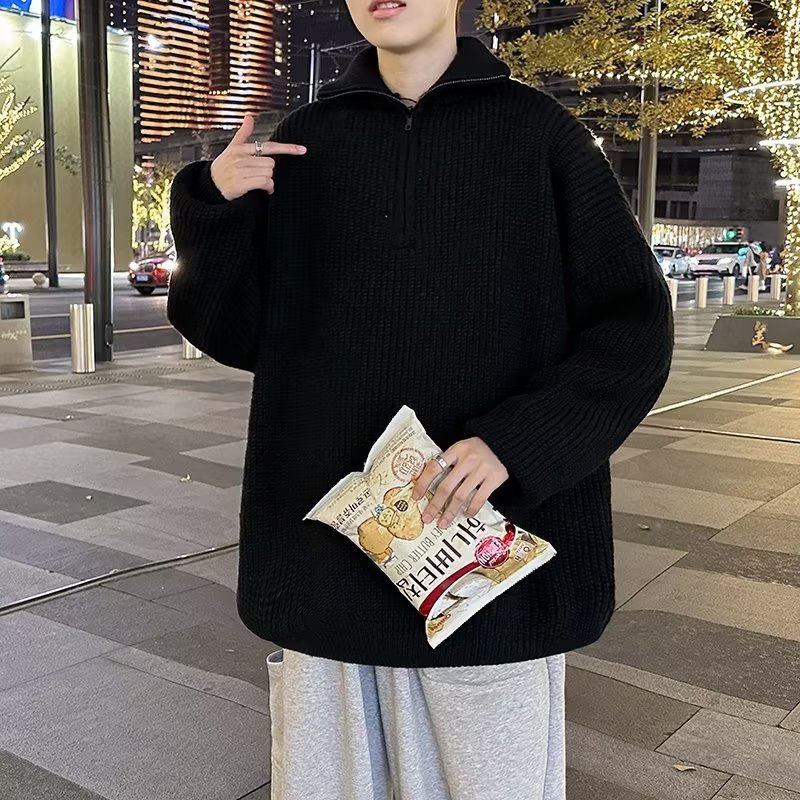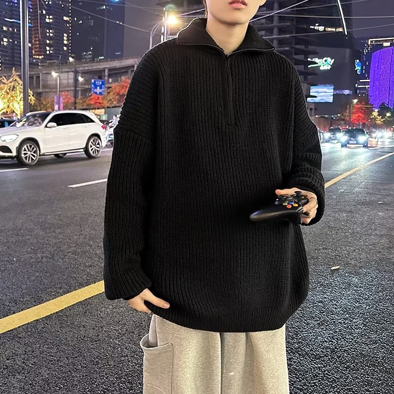 터틀넥 스웨터 남자의 가을과 겨울 새로운 일본 스타일 레트로 하이 스트리트 트렌디 브랜드 니트 스웨터 느슨한 캐주얼 단색 스웨터 재킷스토어 가기