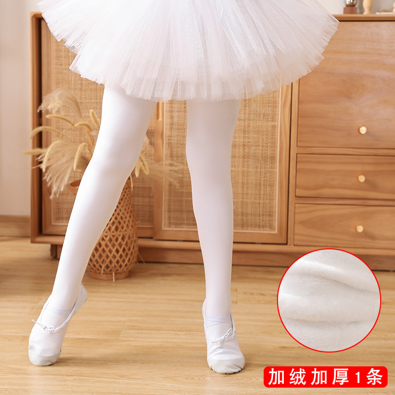 어린이 춤 양말 흰색 가을과 겨울 기모 두꺼운 소녀 춤 연습 특수 팬티 스타킹 스타킹 레깅스