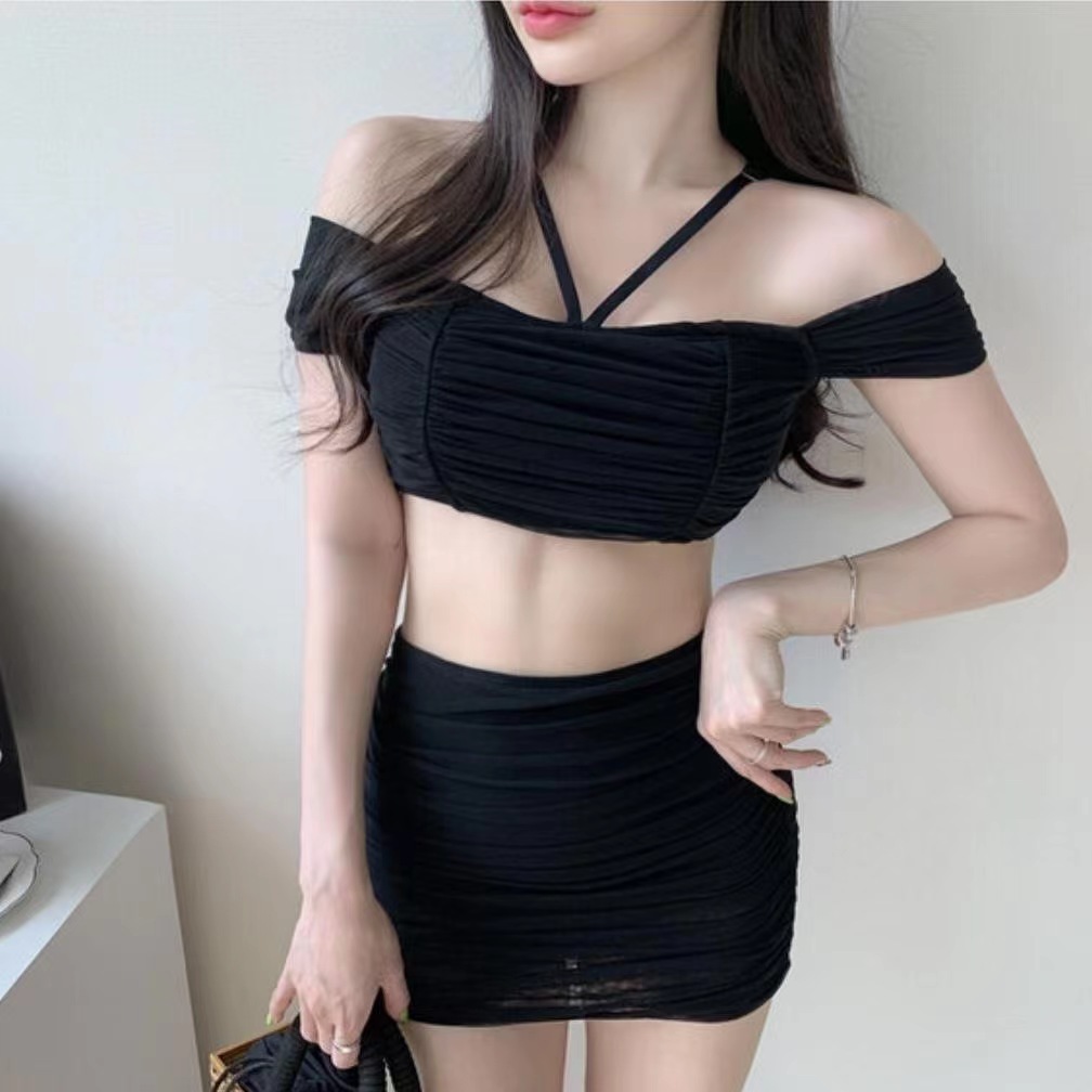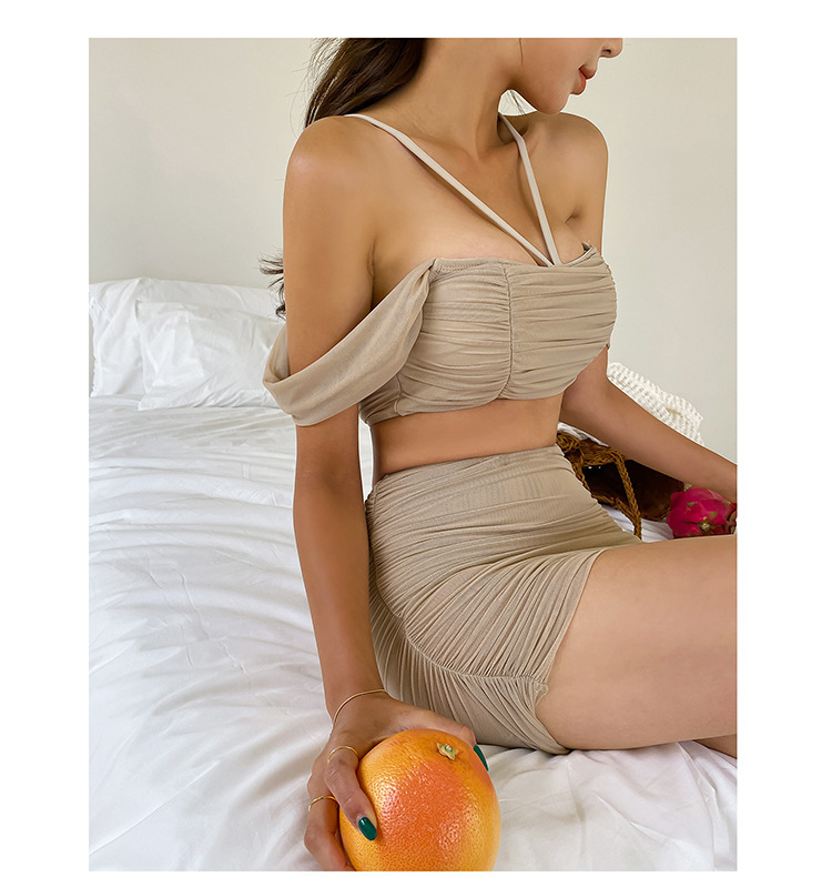 2023 새로운 플리츠 넥 스트랩 신선한 순수 섹시 스플릿 온천 휴가 수영복 여성용 크로스 보더스토어 가기