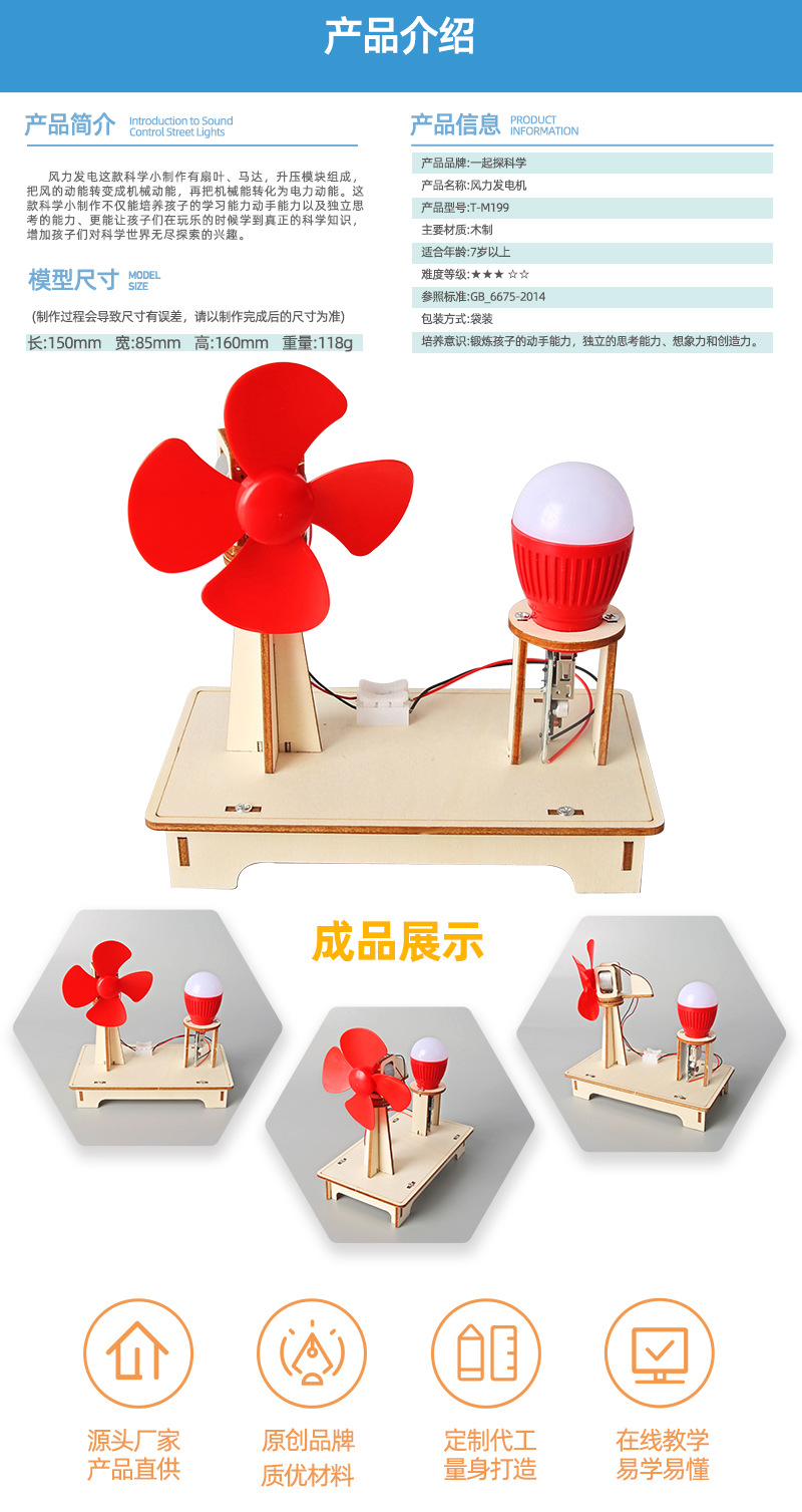 과학 실험 풍력 터빈 학생 과학 기술 소량 제작 어린이 창의 발명 손수 만들기 DIY 재료 패키지스토어 가기