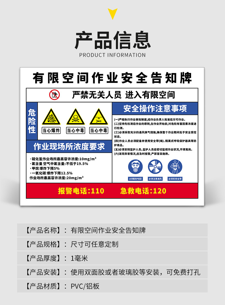 도매 한정 공간 알림 표지판 경고 표시 제한 공간 작동 경고 표시 스티커 위험 지점 조작
