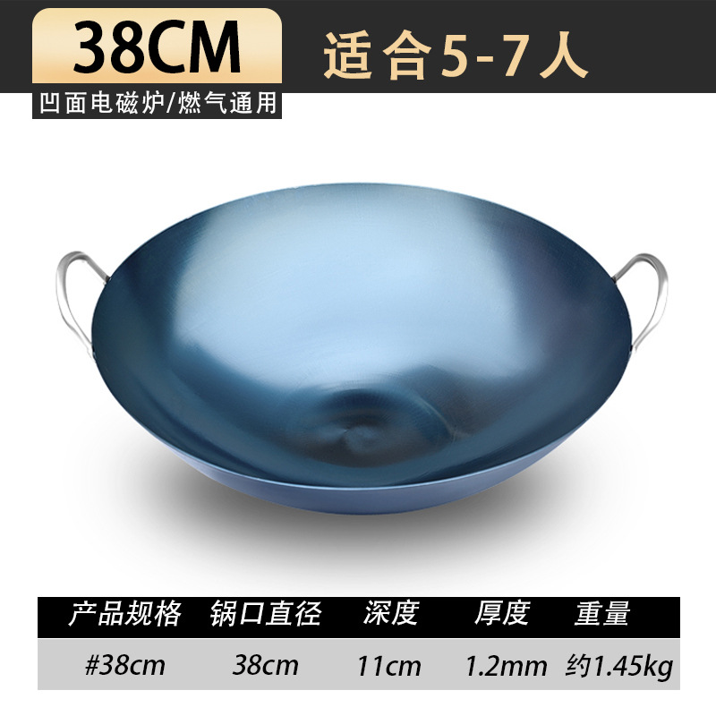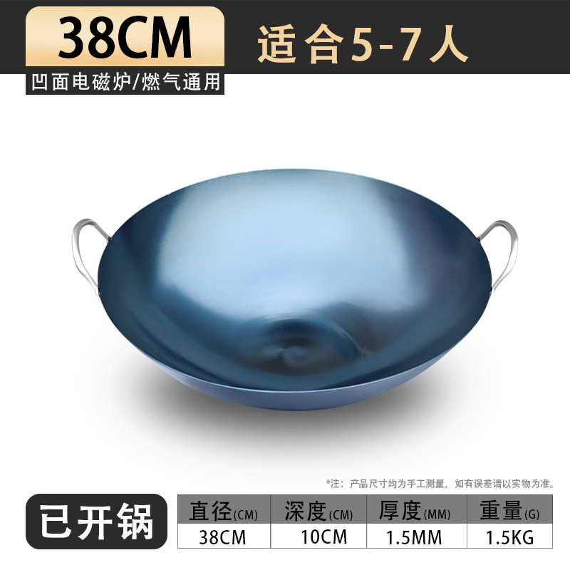 • 38CM1.5MM 두꺼운 쌍귀 철 냄비 [수제 구운 파란색]