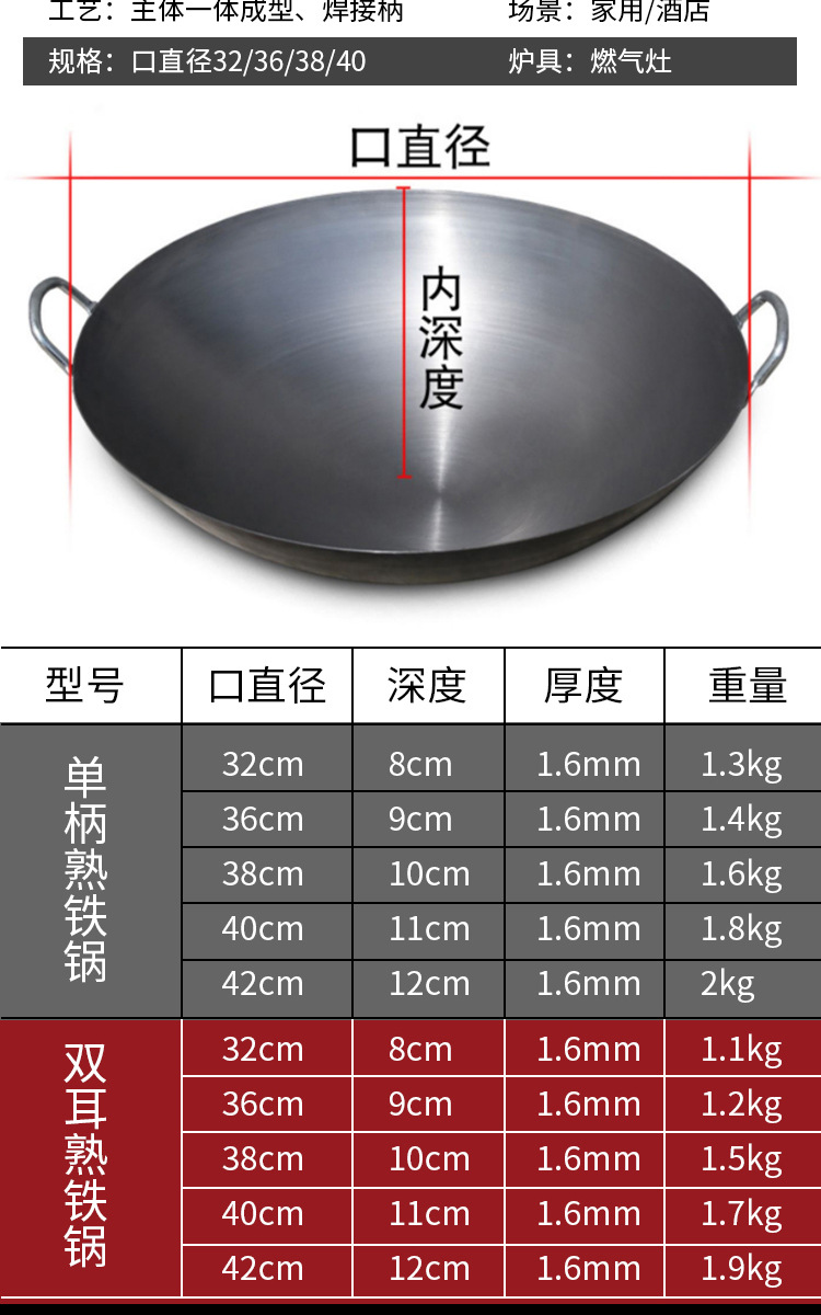 • 36CM1.2MM 두꺼운 쌍귀 철 냄비