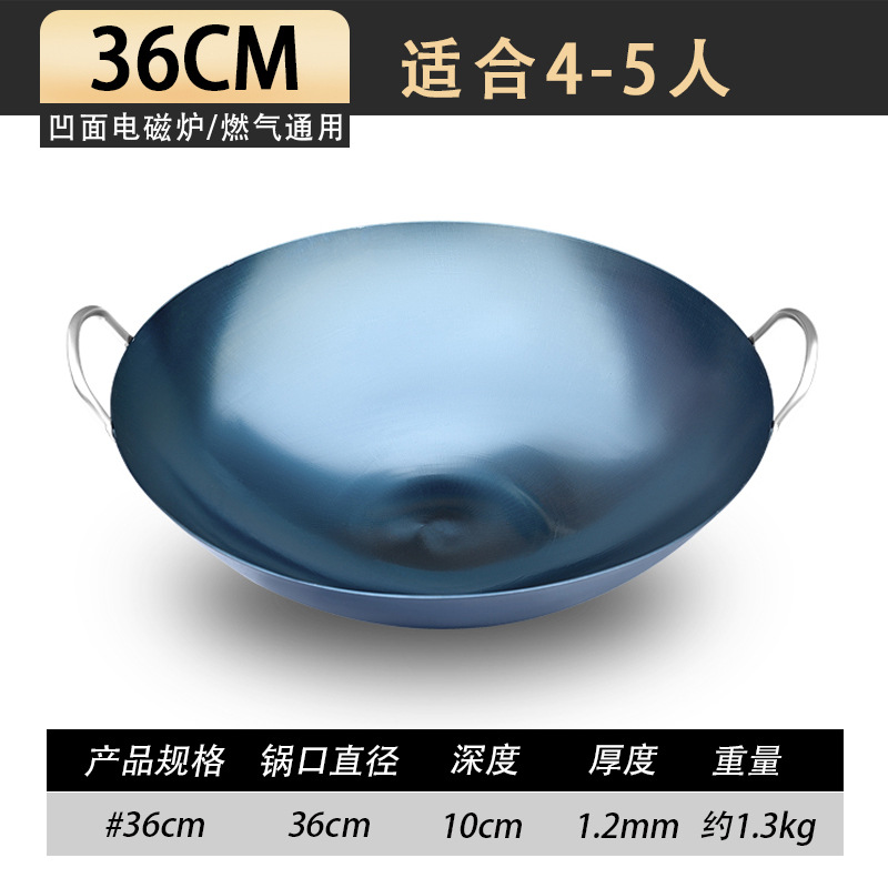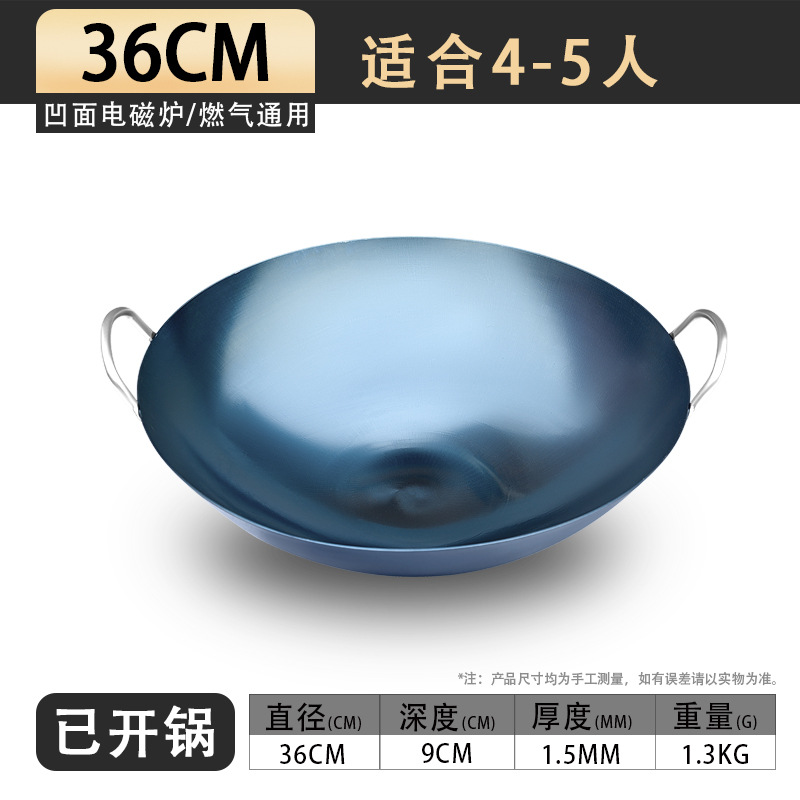 • 36CM1.5MM 두꺼운 쌍귀 철 냄비 [수제 구운 파란색]