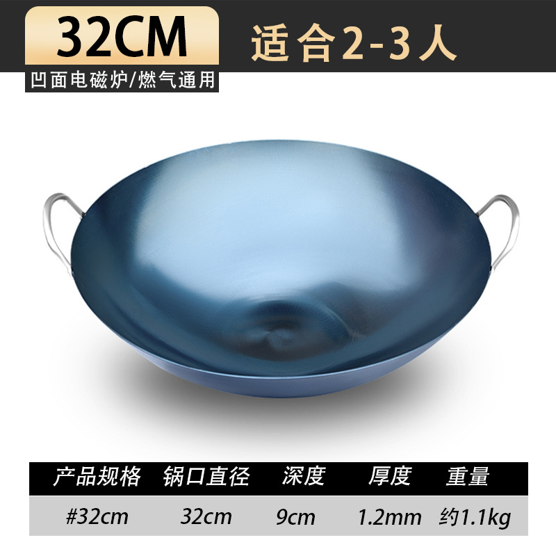 • 32CM1.5MM 두꺼운 쌍귀 철 냄비 [수제 구운 파란색]