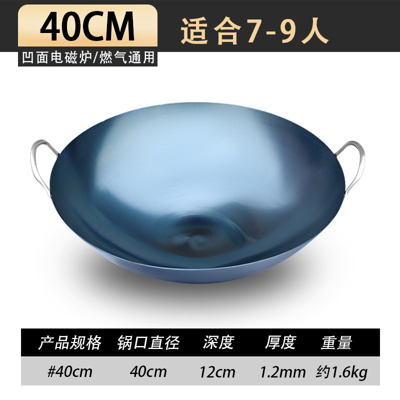 • 40CM1.5MM 두꺼운 쌍귀 철 냄비 [수제 구운 파란색]
