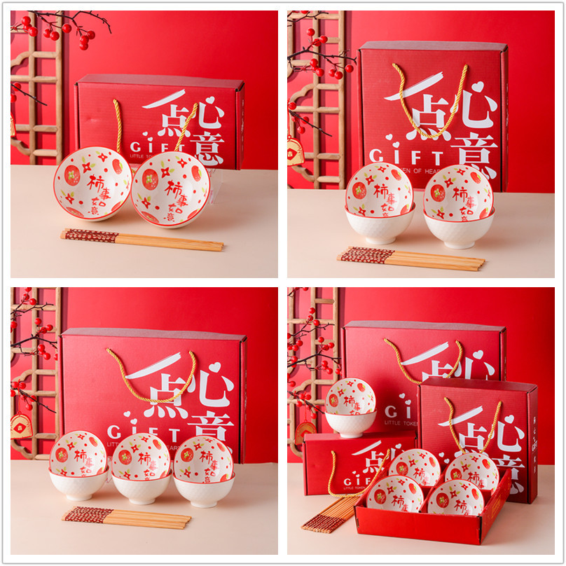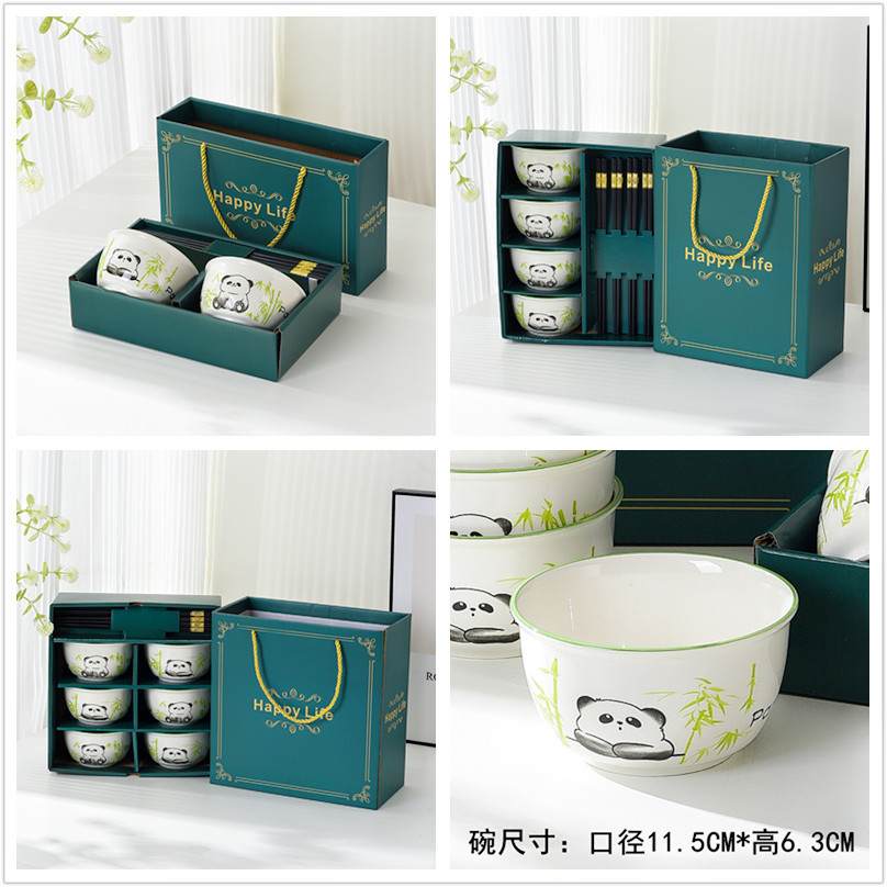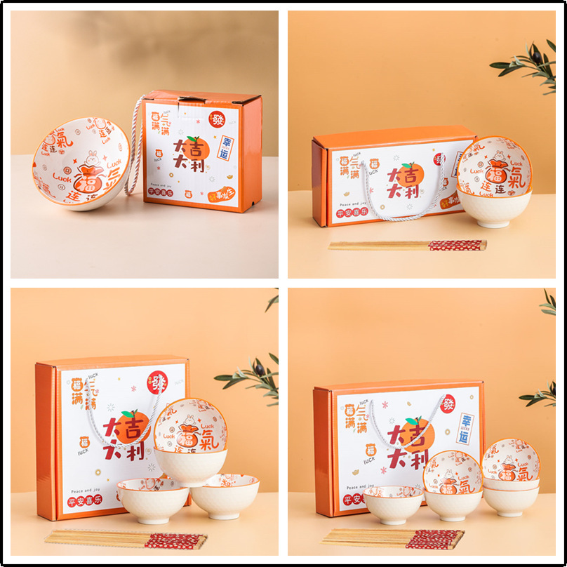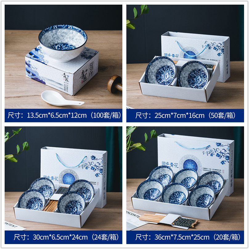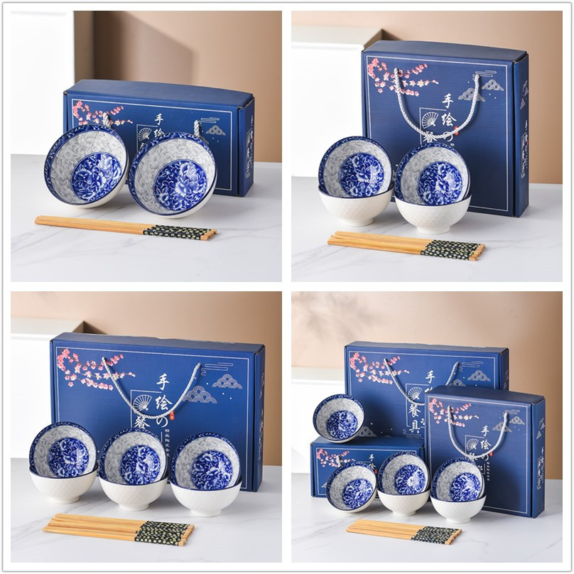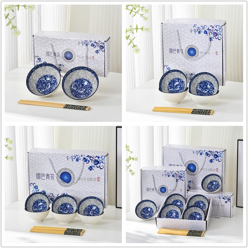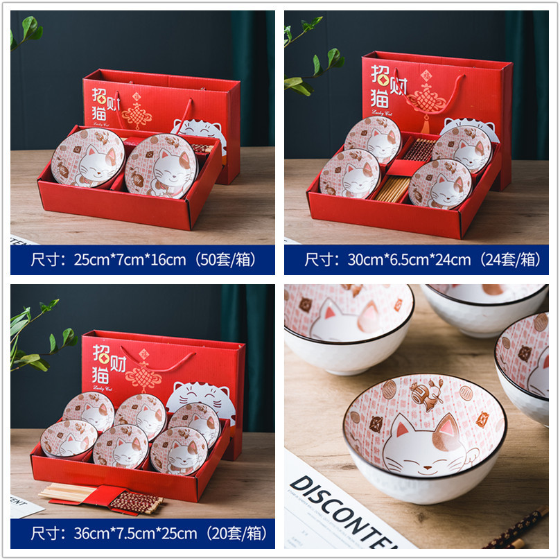 행운과 부를 부르는 행운의 고양이 청화 도자기 그릇과 젓가락 세트 선물 상자 말년 행사 오픈 프로모션 소형 선물스토어 가기