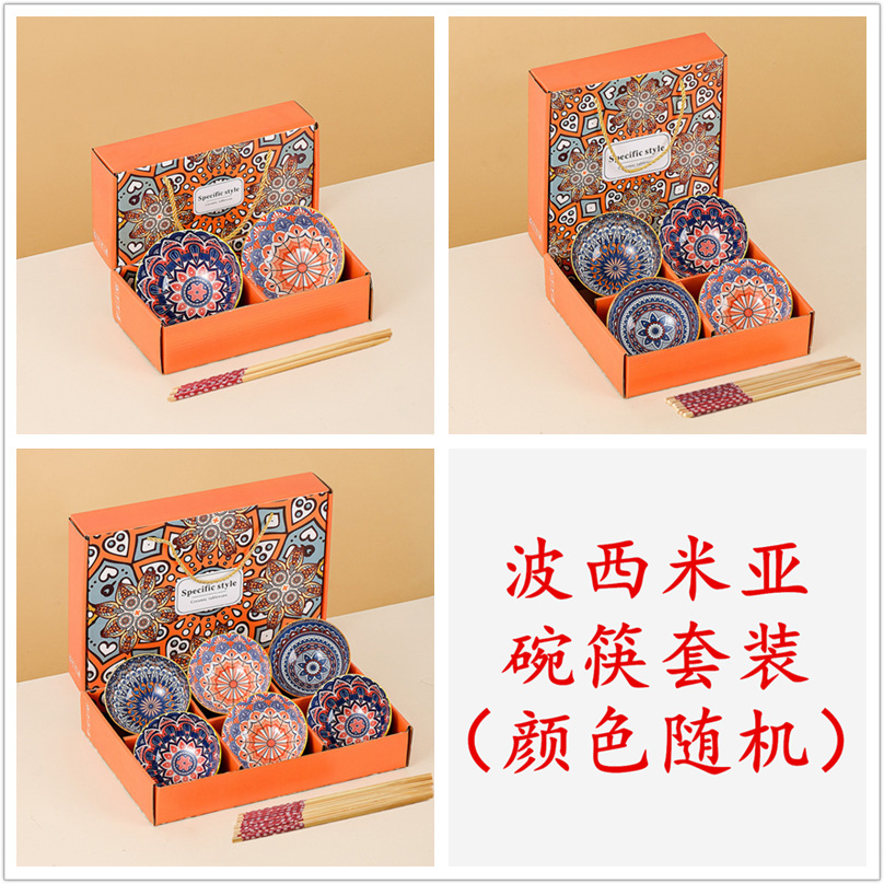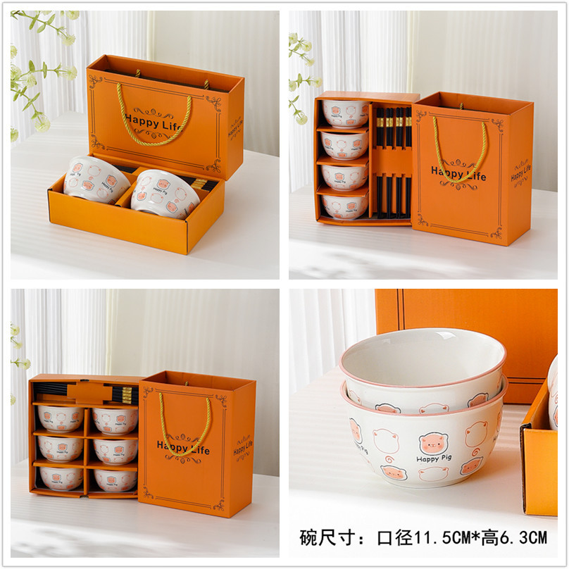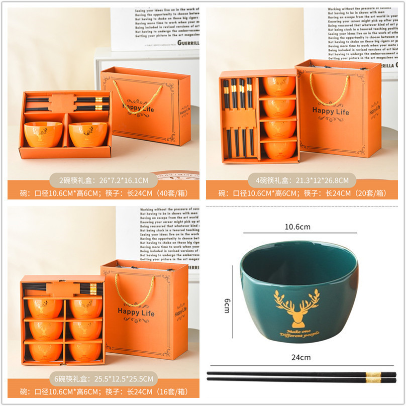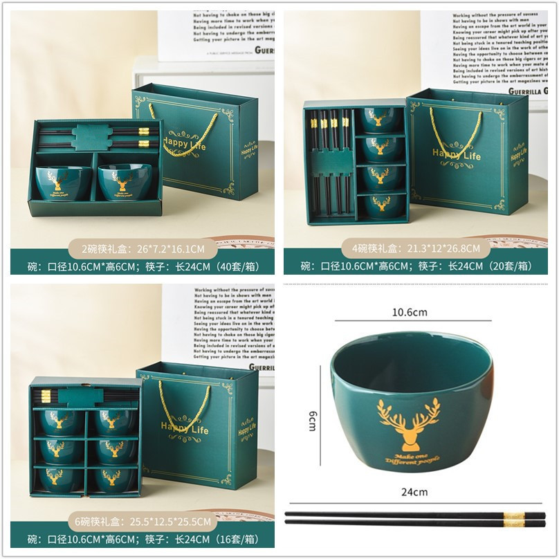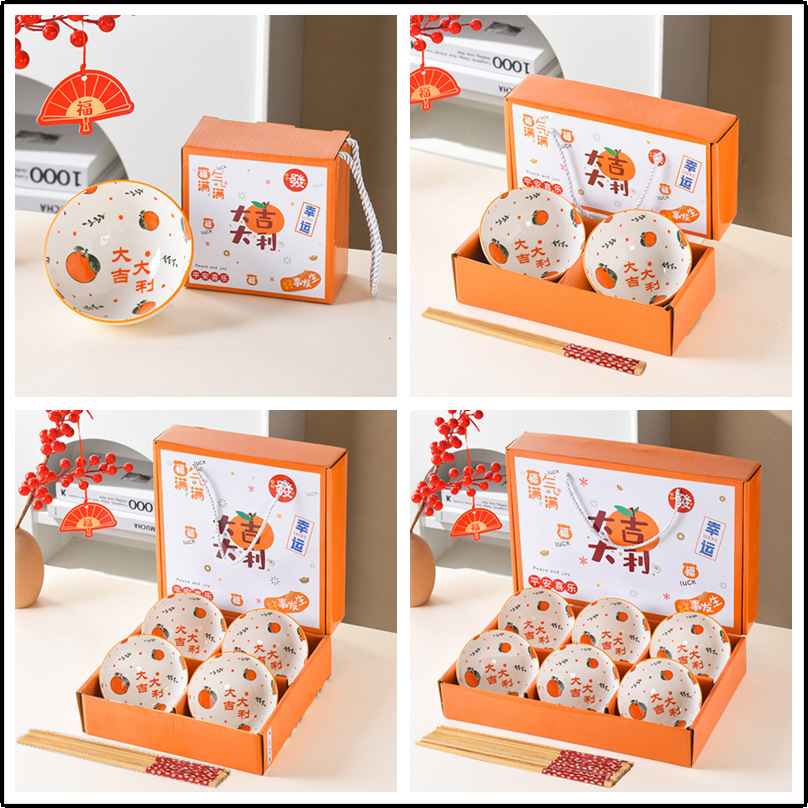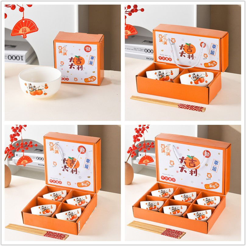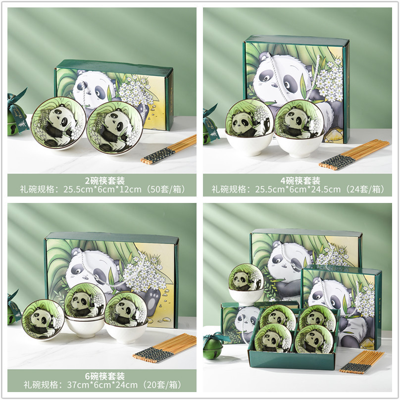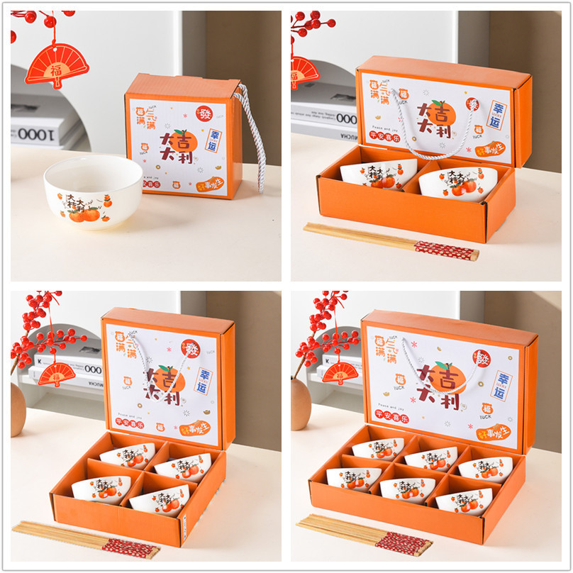 행운과 부를 부르는 행운의 고양이 청화 도자기 그릇과 젓가락 세트 선물 상자 말년 행사 오픈 프로모션 소형 선물스토어 가기
