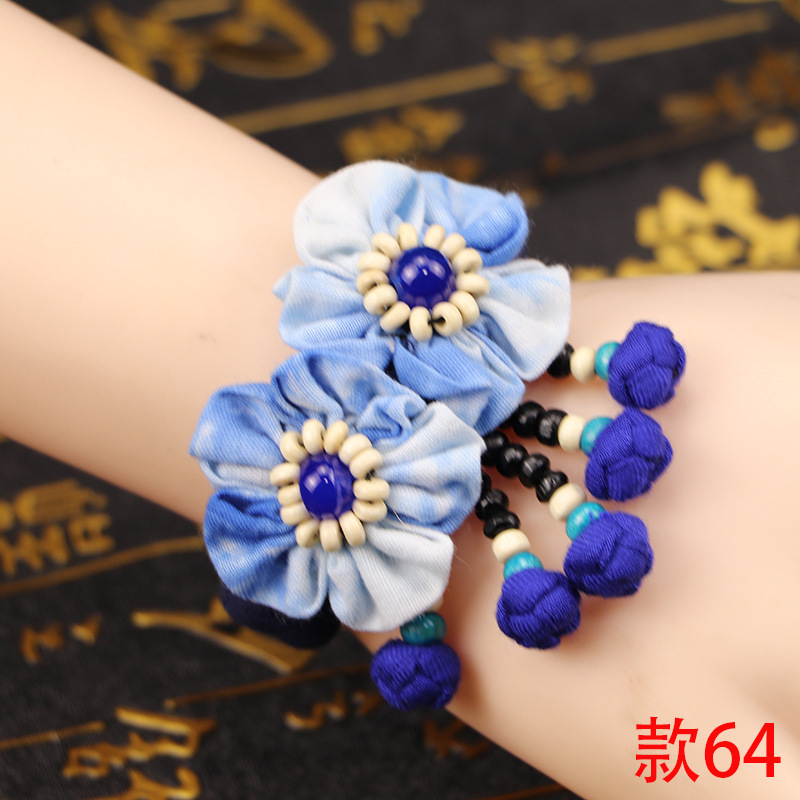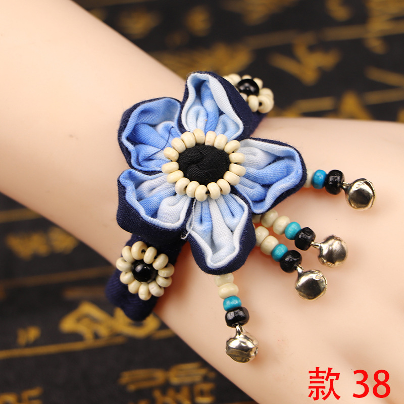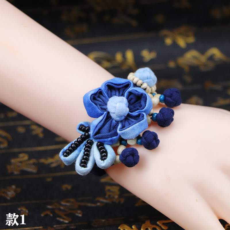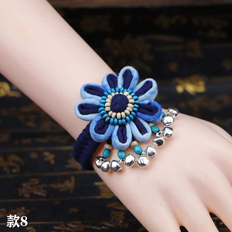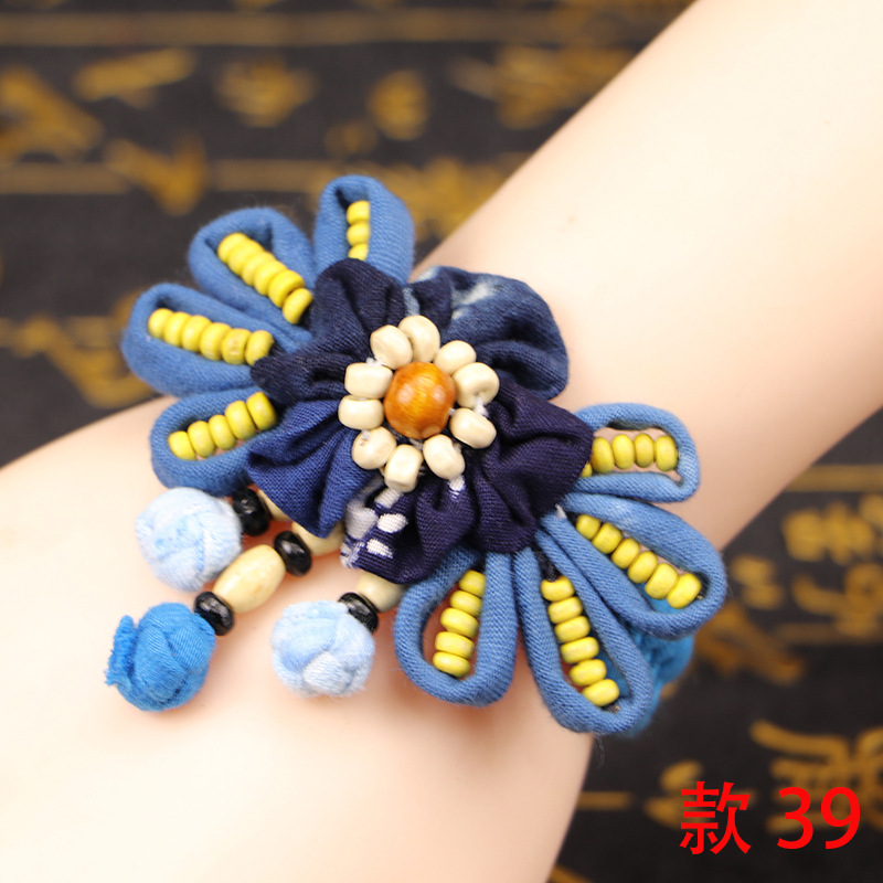 윈난 민족 블루 넥타이 염색 패브릭 팔찌 달리 리장 뜨거운 손으로 수 놓은 꽃 다양한 옵션스토어 가기