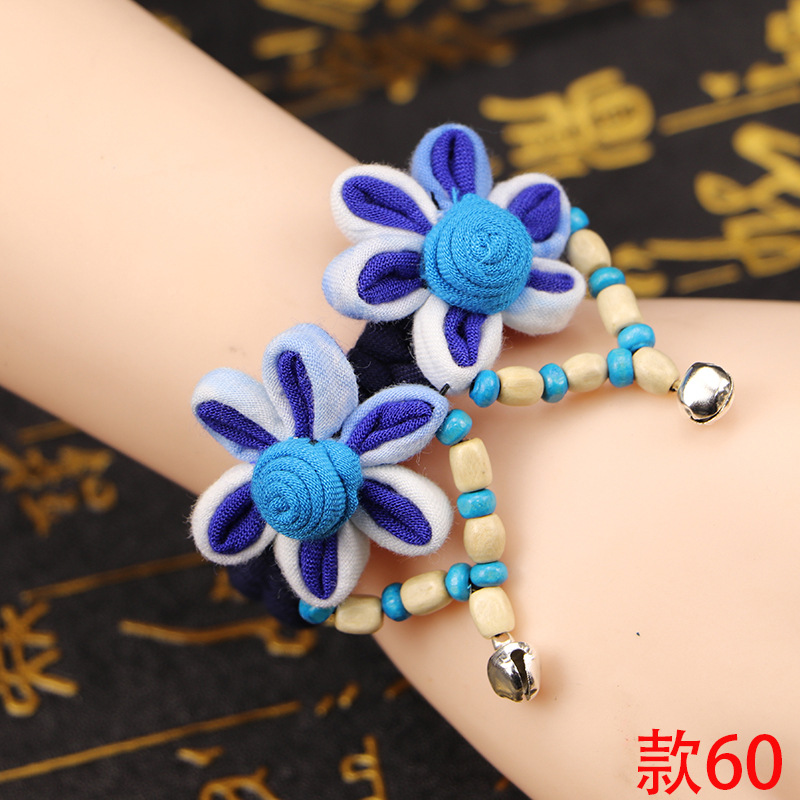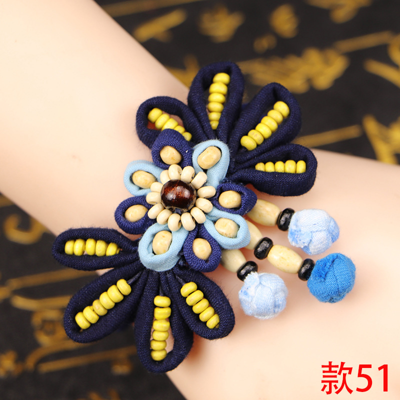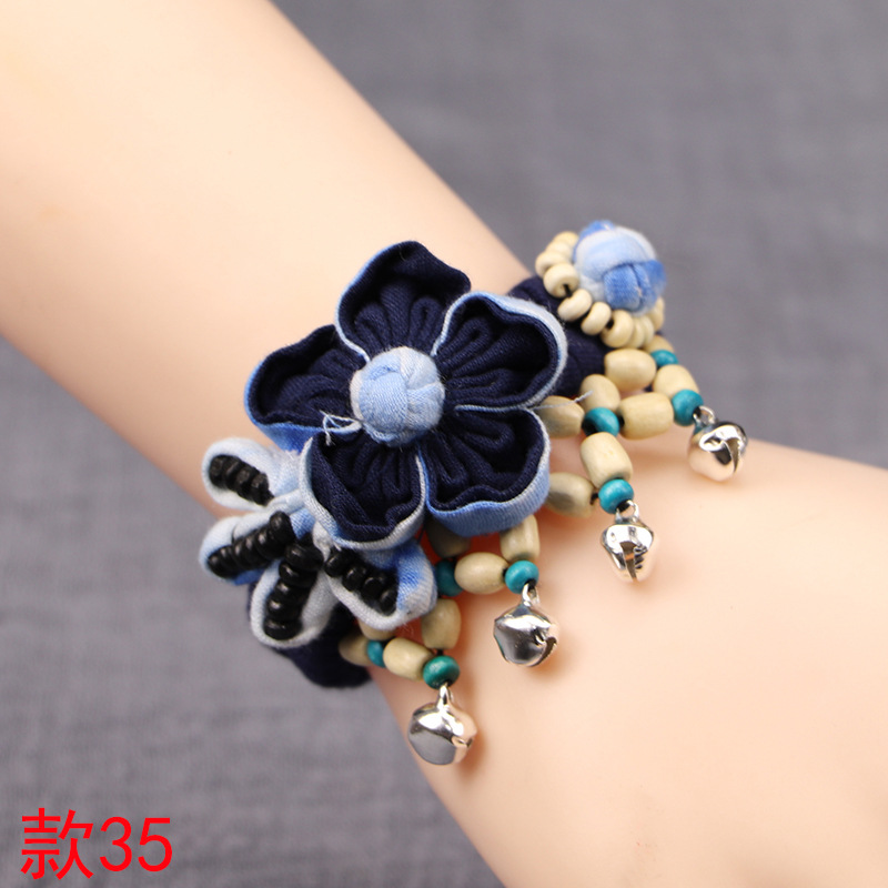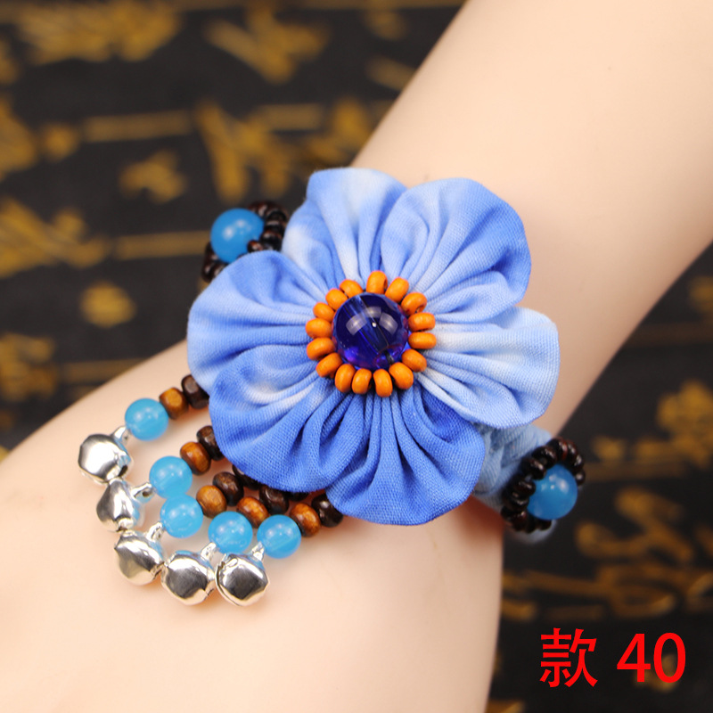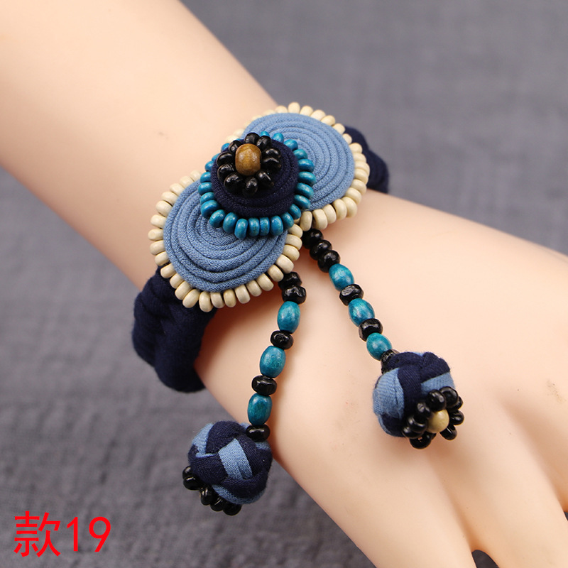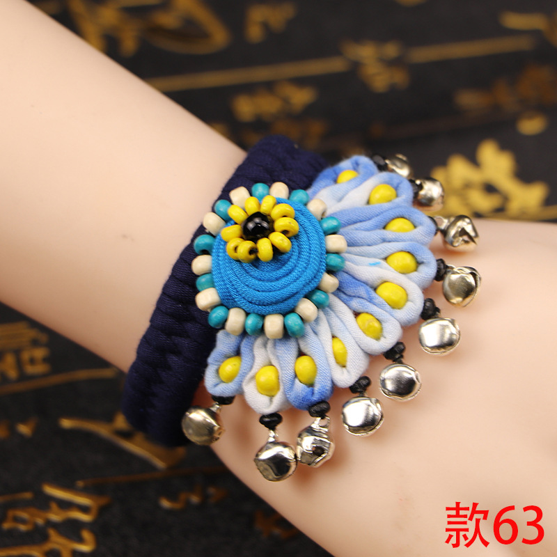 윈난 민족 블루 넥타이 염색 패브릭 팔찌 달리 리장 뜨거운 손으로 수 놓은 꽃 다양한 옵션스토어 가기