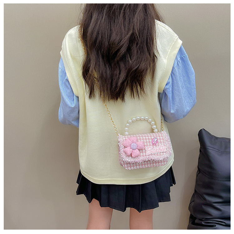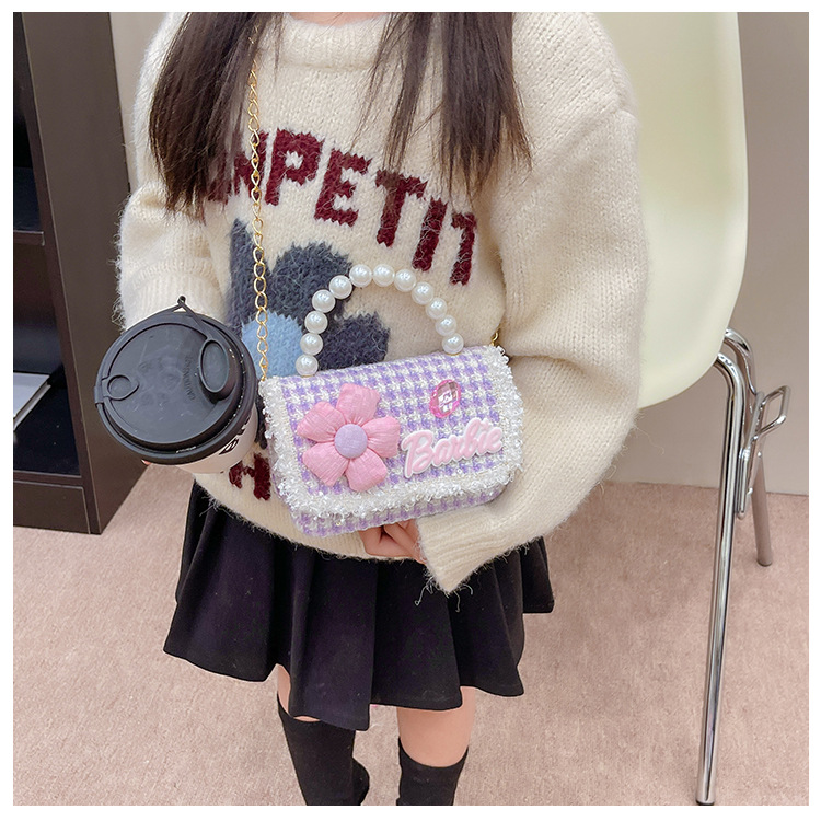 새로운 어린이 숄더백 귀여운 공주 동전 지갑 어린 소녀 진주 핸드백 어린이 크로스 바디 백 도매