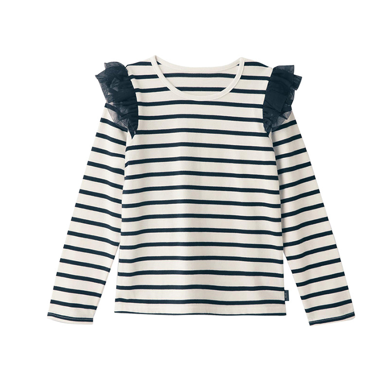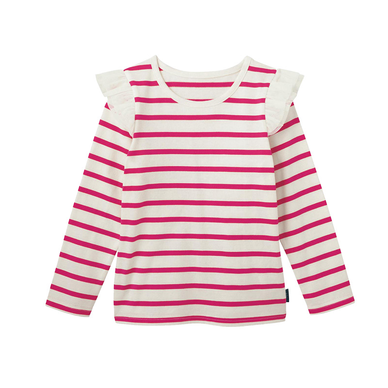 봄과 가을 여아 긴팔 티셔츠 순면 아기 여아 비행 슬리브 베이스 셔츠 어깨 원사 공주 소매 스트라이프 얇은 탑