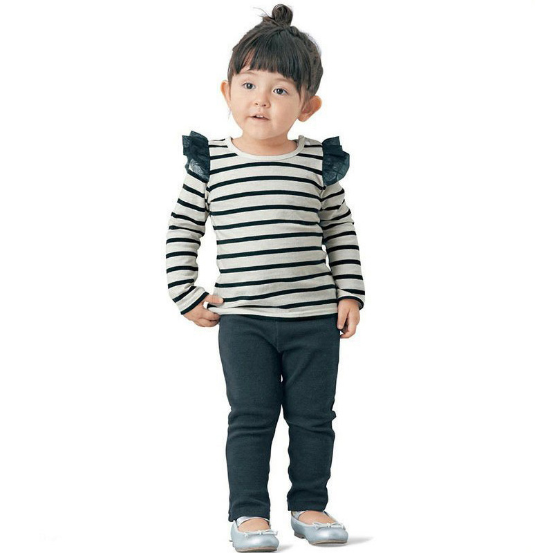 봄과 가을 여아 긴팔 티셔츠 순면 아기 여아 비행 슬리브 베이스 셔츠 어깨 원사 공주 소매 스트라이프 얇은 탑스토어 가기