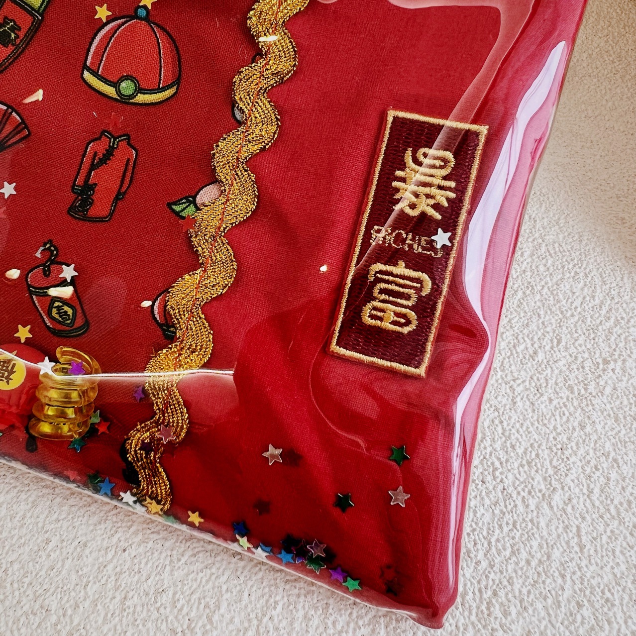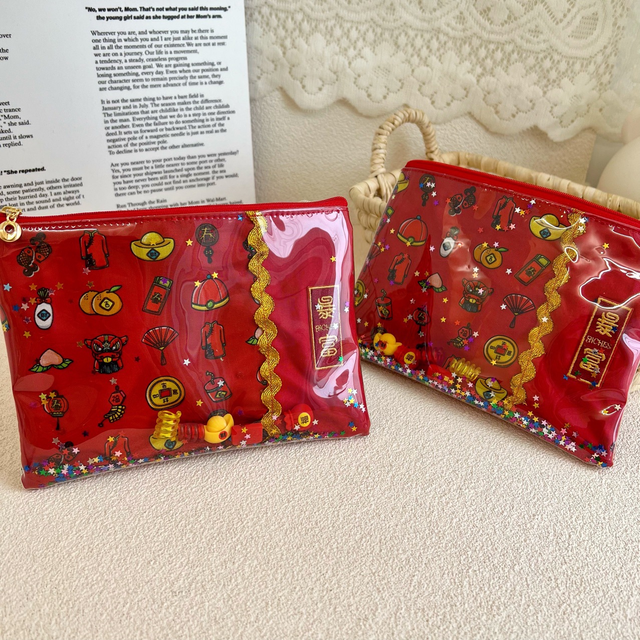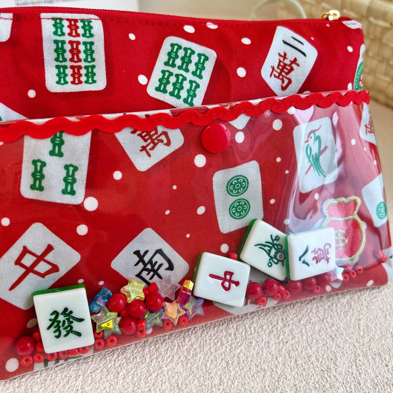 麻将印花棉布双层透明TPU流沙化妆包手机零钱包便携手包工厂批发