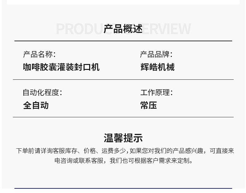 产品特性:1、全自动完成包装流程,机器占地面积小,简单易操作。
