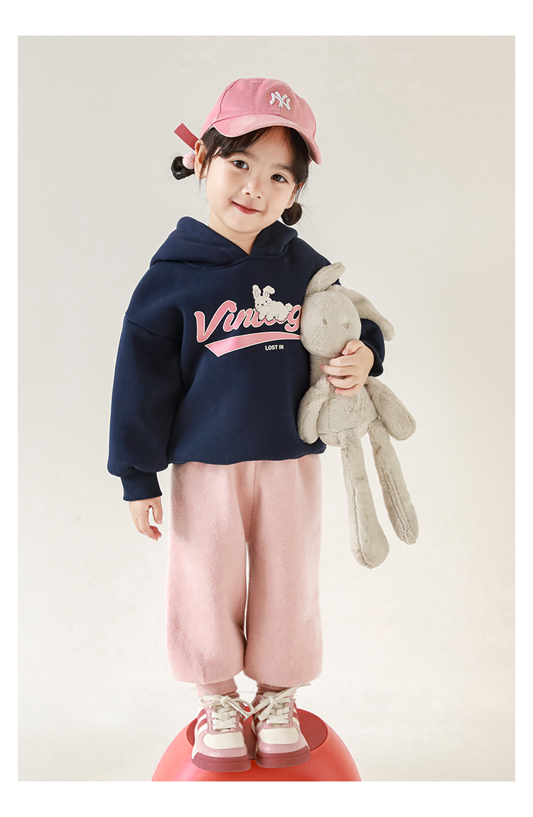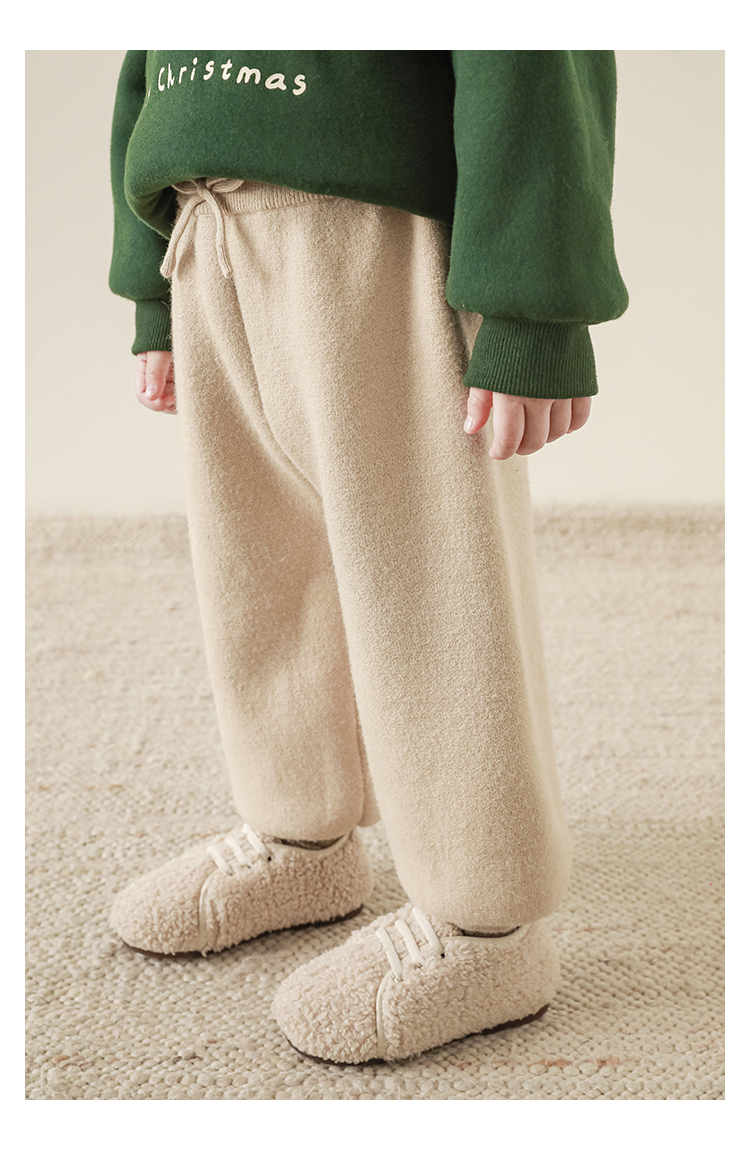 Wurib 소녀의 두꺼운 캐주얼 바지 2023 겨울 한국 스타일 어린이 유행 따뜻한 원피스 벨벳 발목 바지
