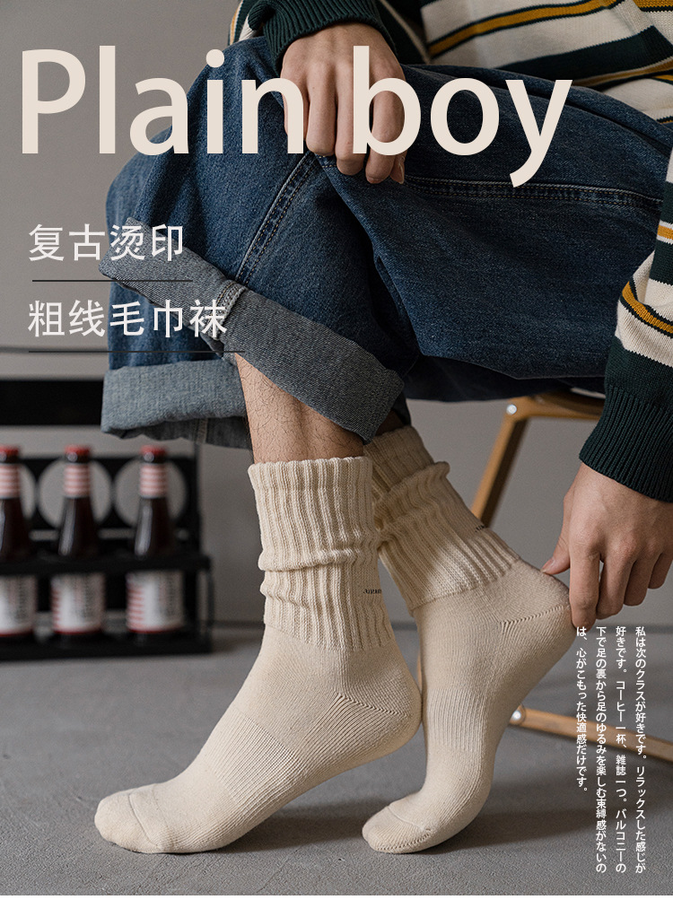 미드 튜브 양말 남성용 가을과 겨울 수건 양말 80g 두꺼운 따뜻한 단색 캐주얼 두꺼운 선 긴 튜브 양말면 양말스토어 가기