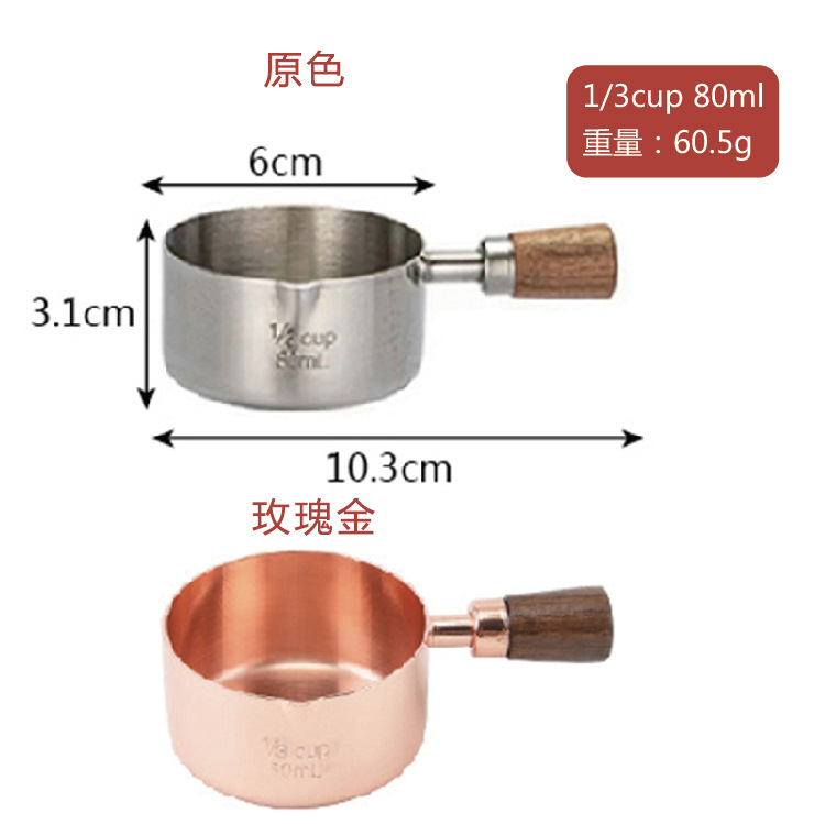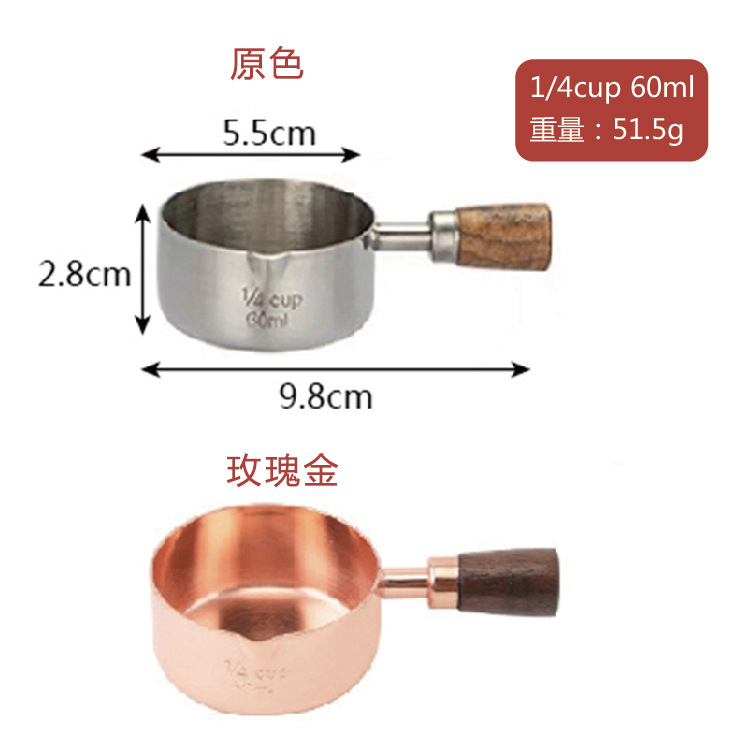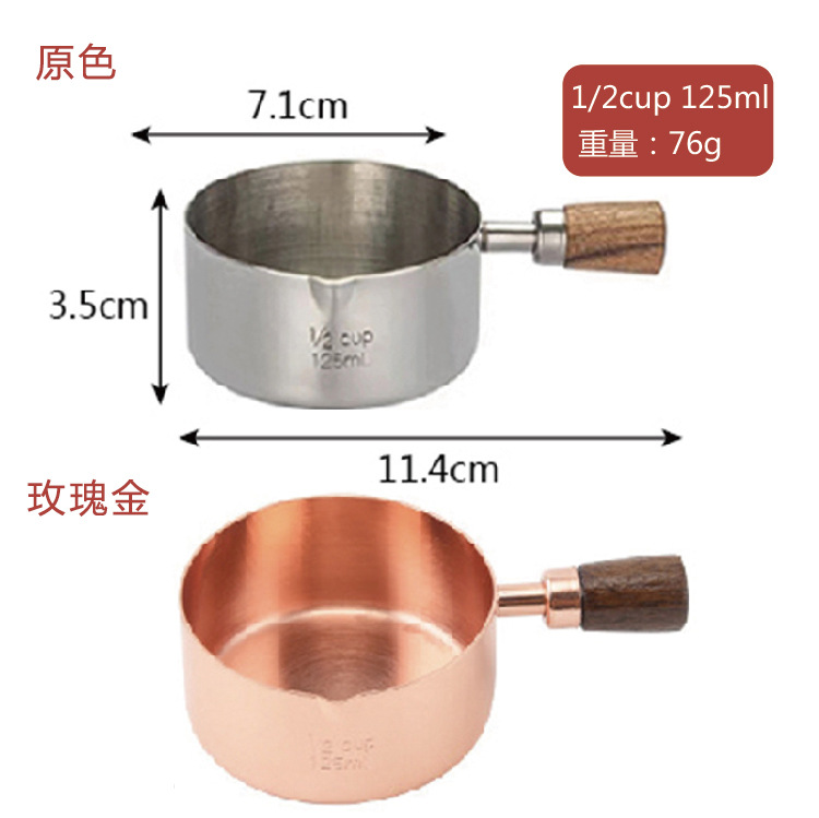 재고 4 조각 짧은 손잡이 입 소스 컵 스테인레스 스틸 측정 컵 로즈 골드 블랙 호두 측정 컵 베이킹 도구스토어 가기