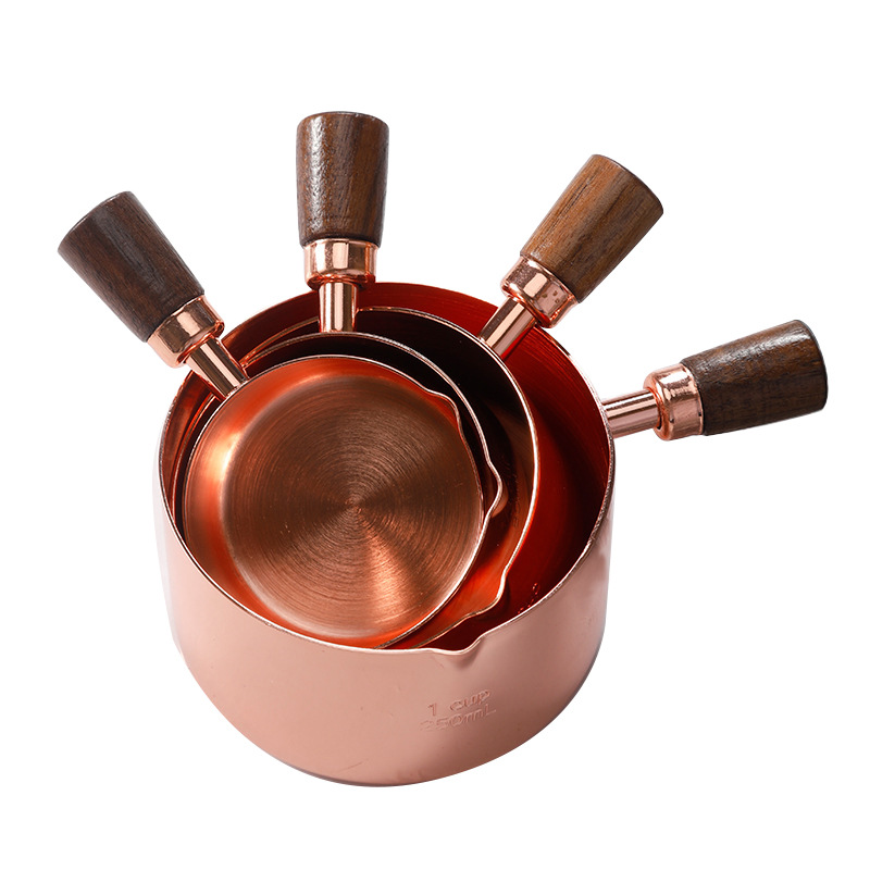 재고 4 조각 짧은 손잡이 입 소스 컵 스테인레스 스틸 측정 컵 로즈 골드 블랙 호두 측정 컵 베이킹 도구