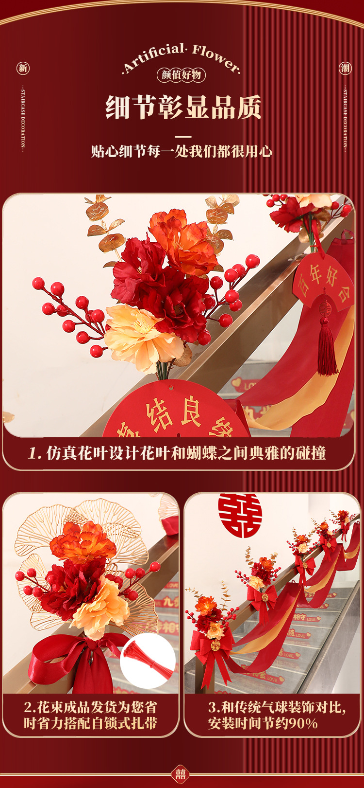 웨딩 용품 웨딩 계단 난간 장식 웨딩 장식 웨딩 단어 스티커 꽃 펜던트 웨딩 용품을 당겨스토어 가기