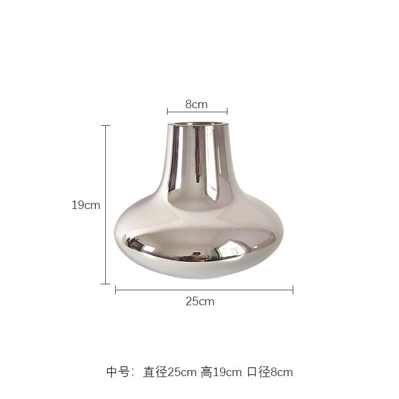 현대 간단한 전기 도금 실버 꽃 장치 빛 고급 유리 꽃병 식탁 커피 테이블 꽃 배열 모델 룸 거실 장식품