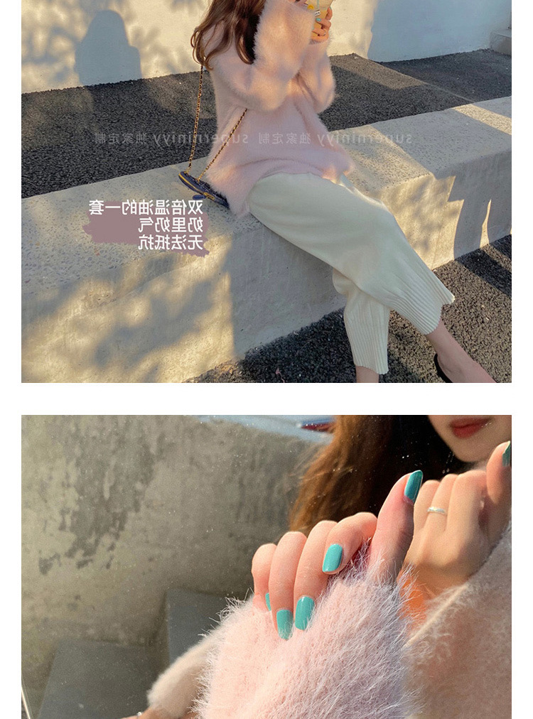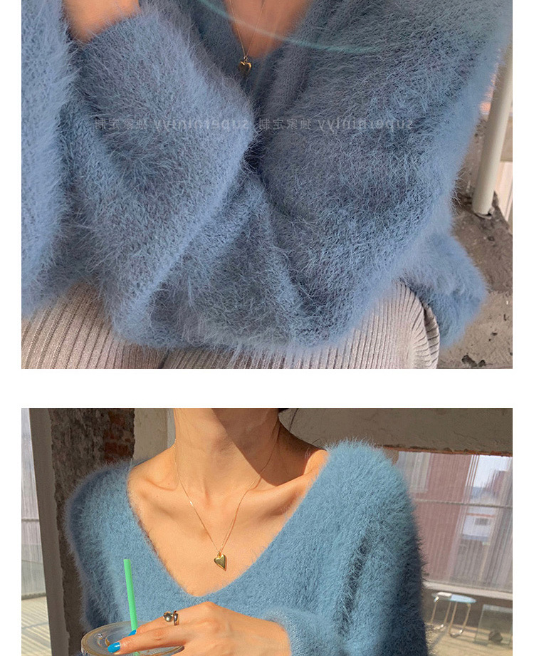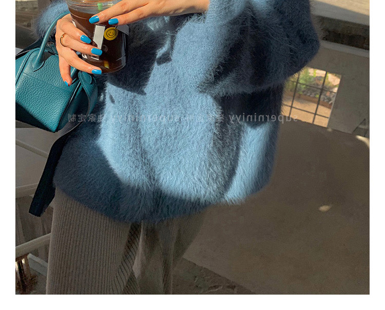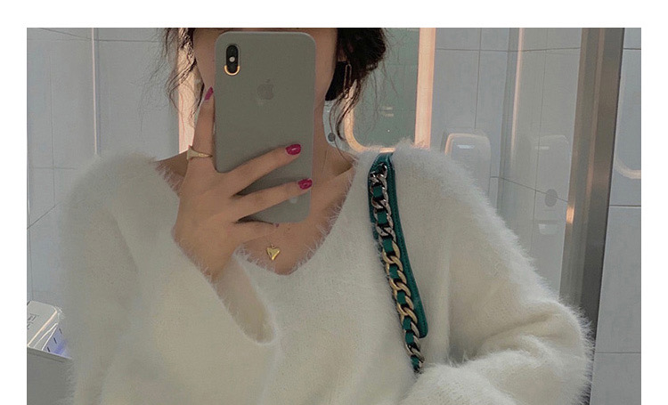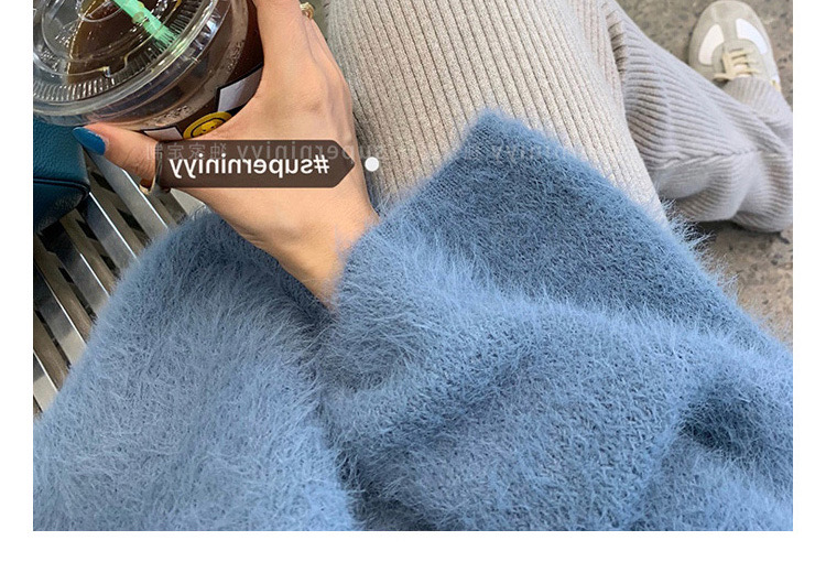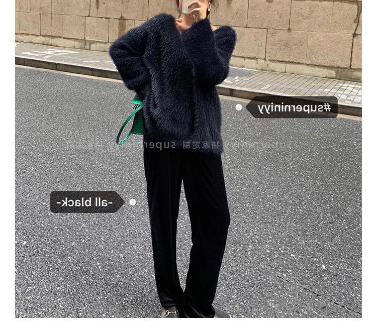 2024 가을 겨울 신상 한국 스타일 화이트 브이넥 해마털 스웨터 여성용 루즈핏 인조 밍크 니트 베이스 셔츠스토어 가기