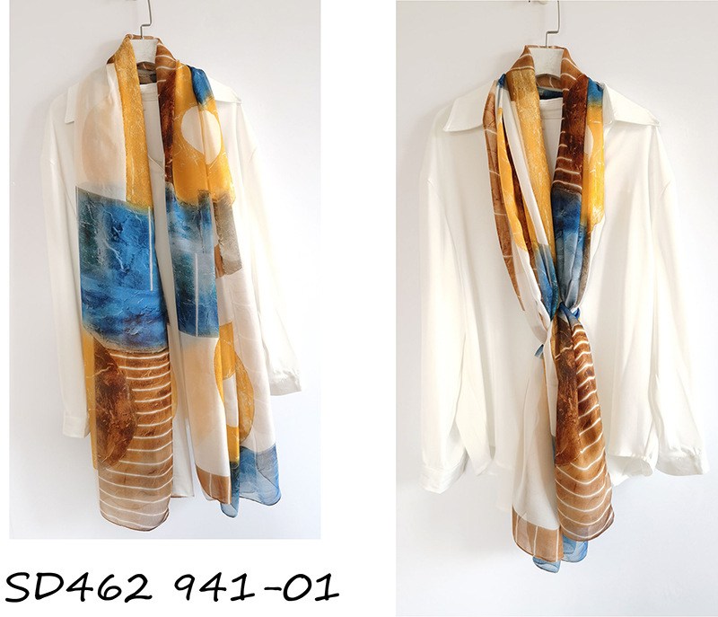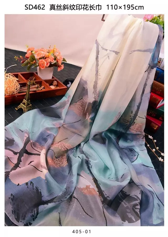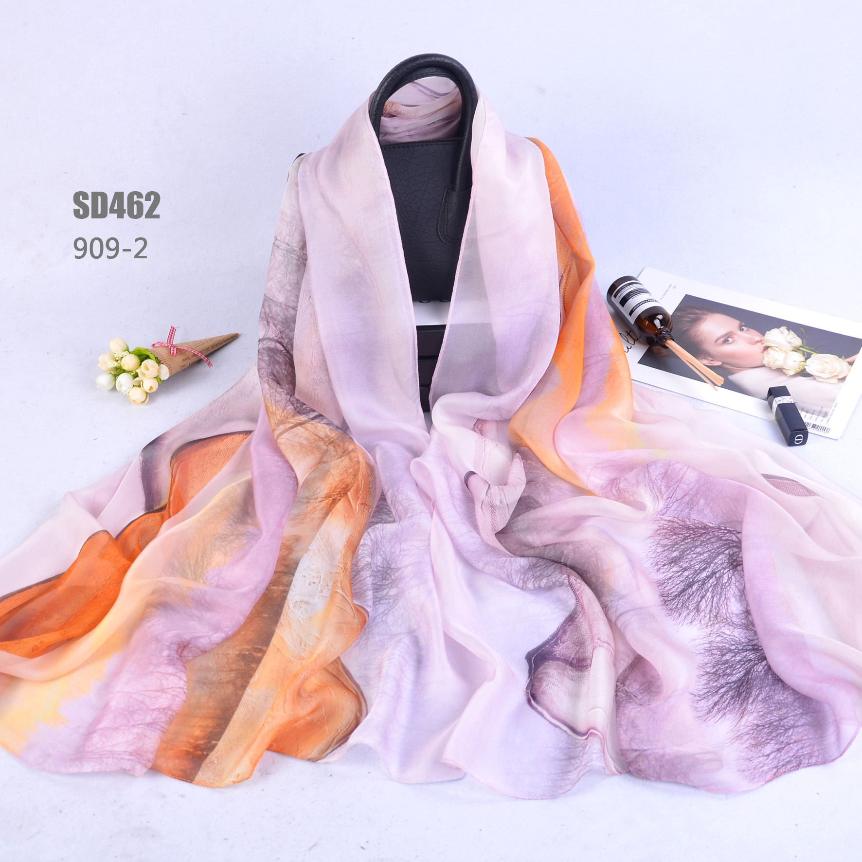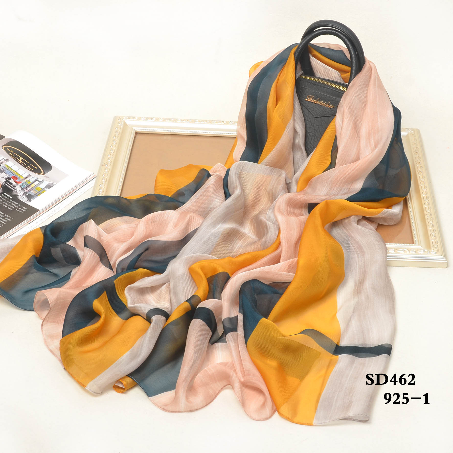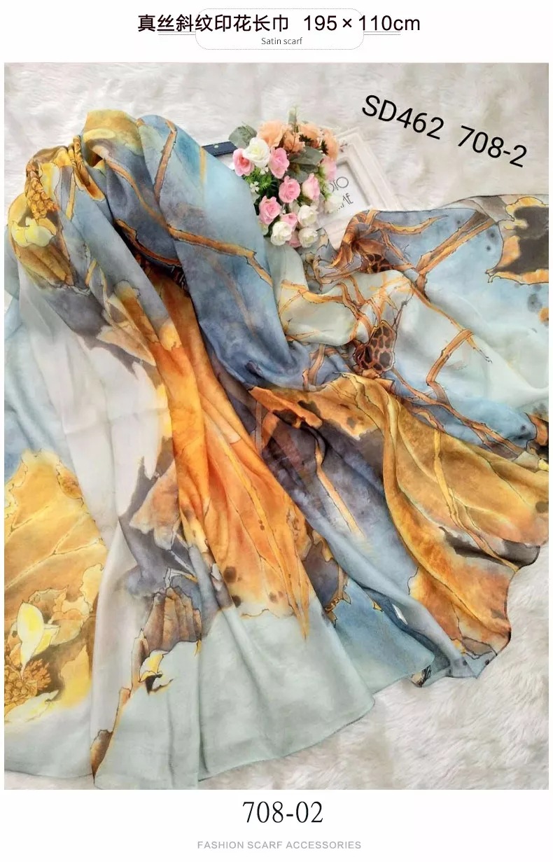 항저우 실크 봄과 가을 실크 스카프 도매 뽕나무 실크 스카프 여성 우아한 숄 디지털 인쇄 긴 스카프 재고스토어 가기
