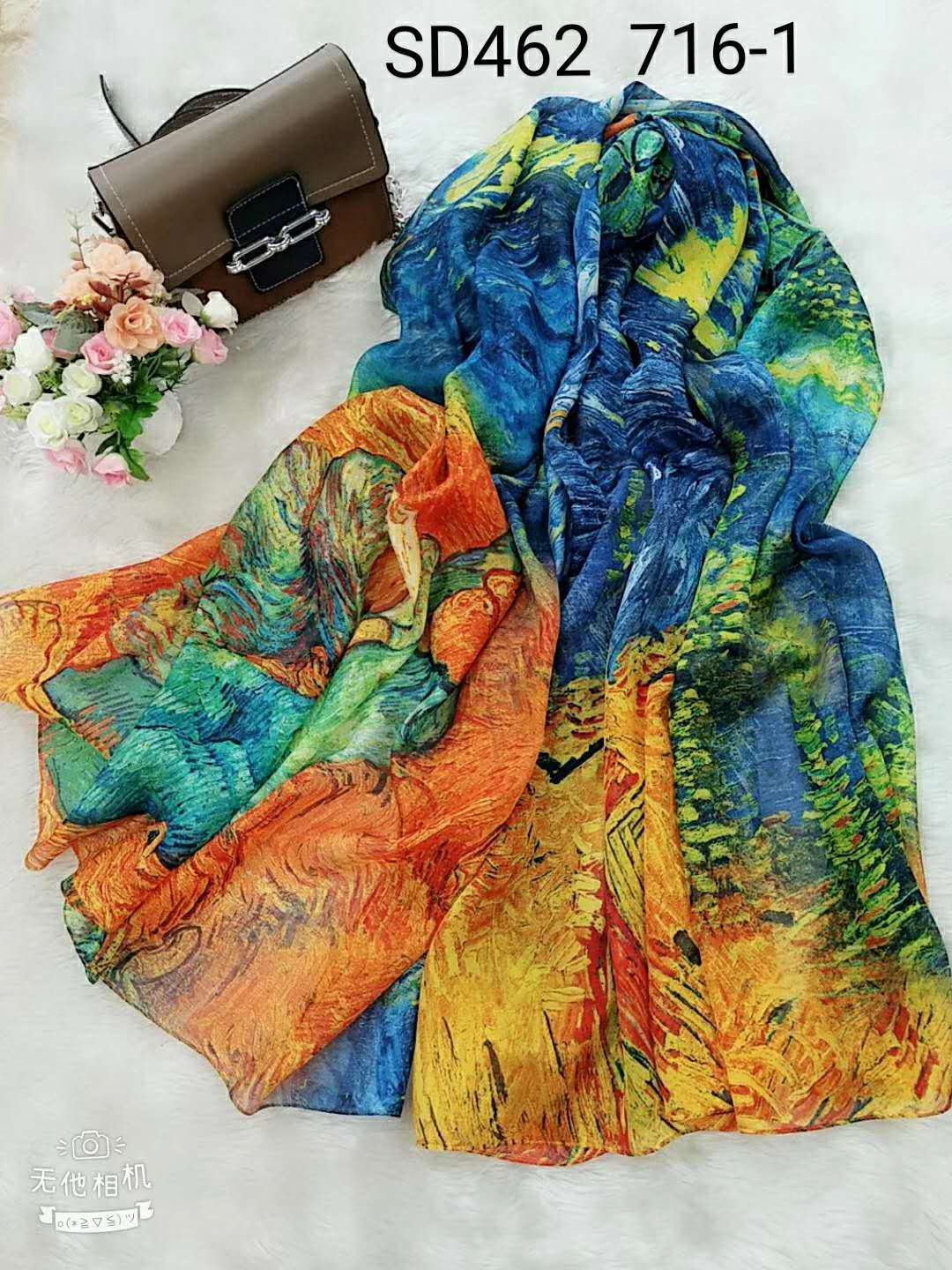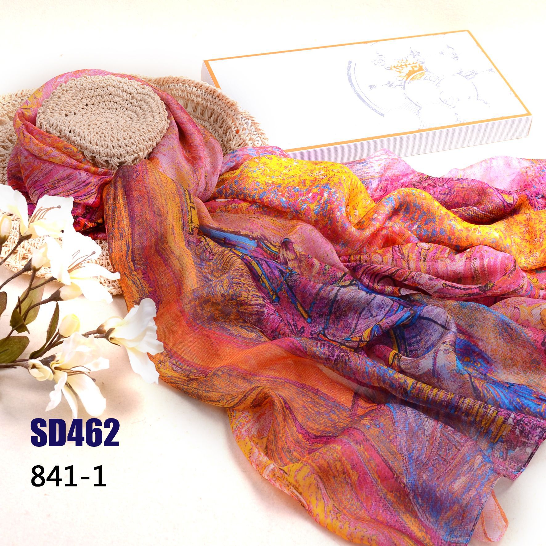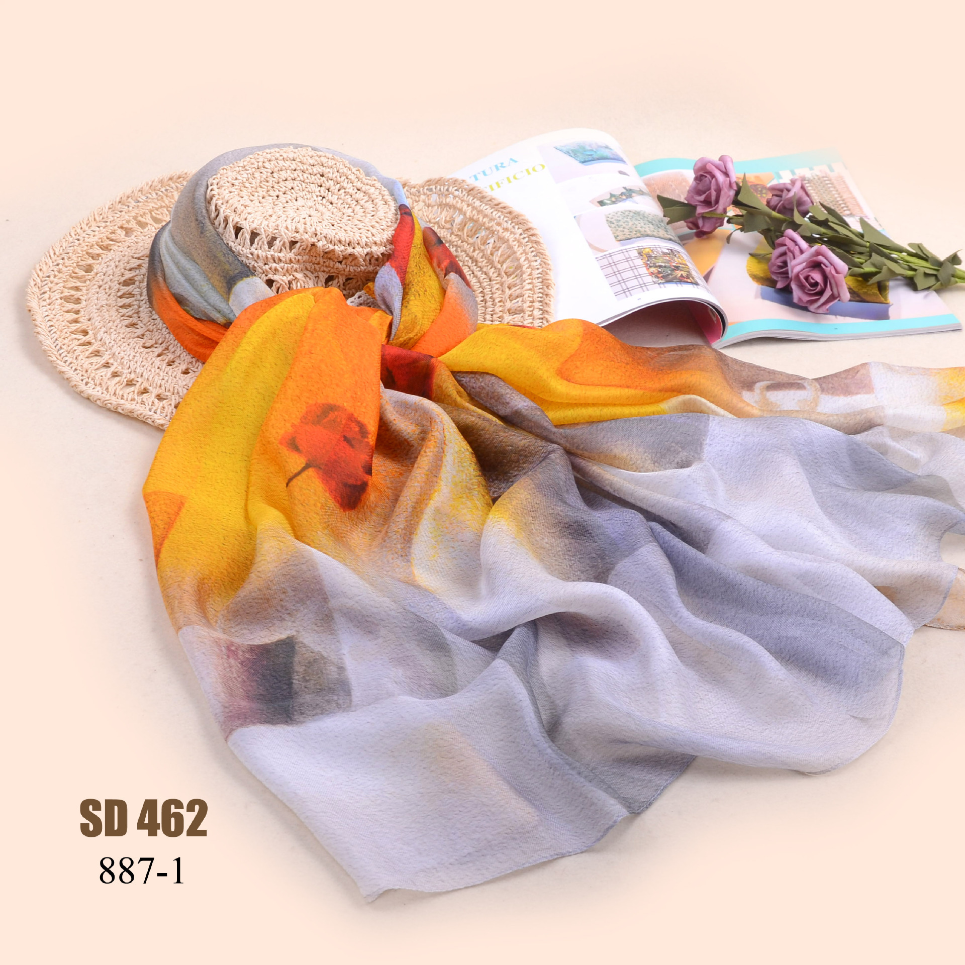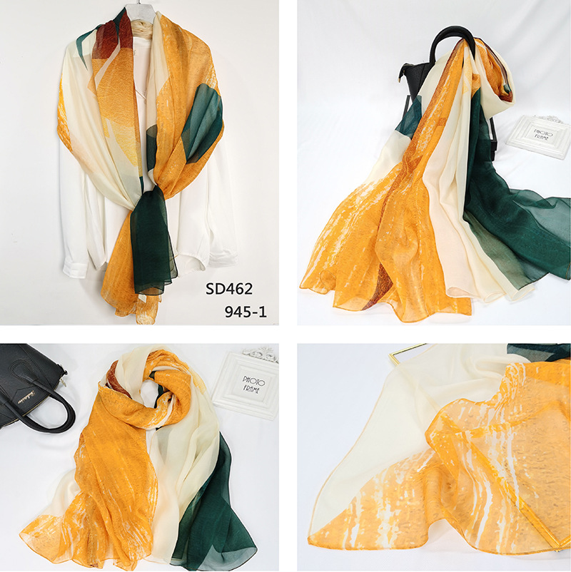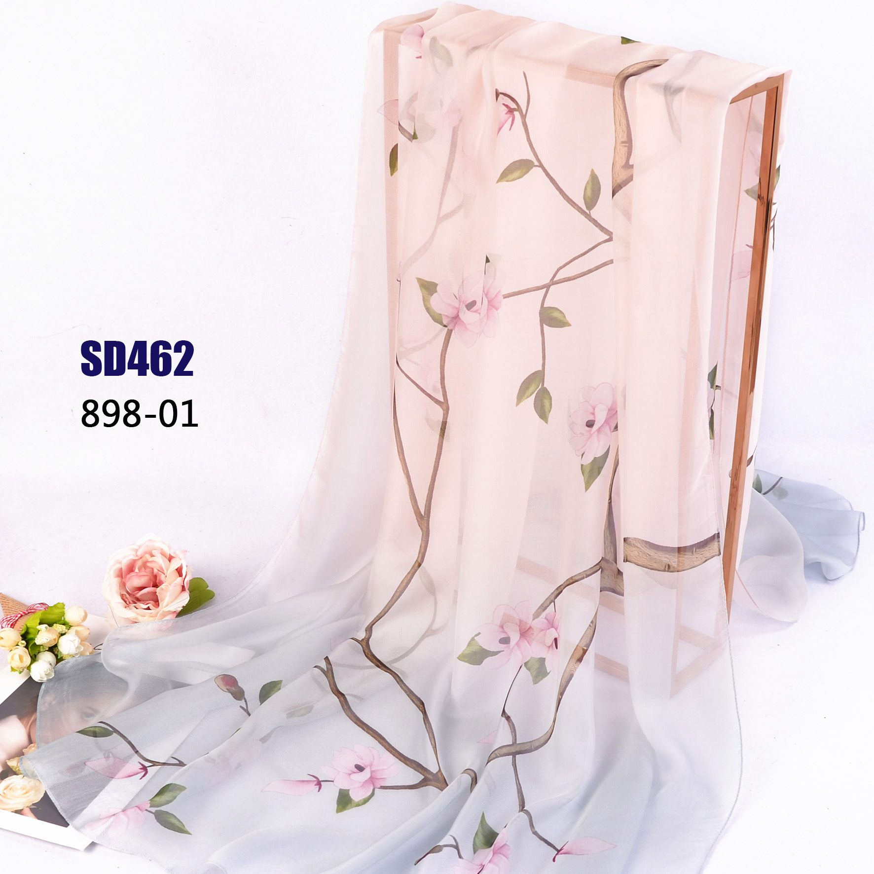항저우 실크 봄과 가을 실크 스카프 도매 뽕나무 실크 스카프 여성 우아한 숄 디지털 인쇄 긴 스카프 재고스토어 가기