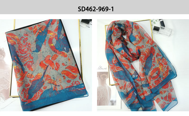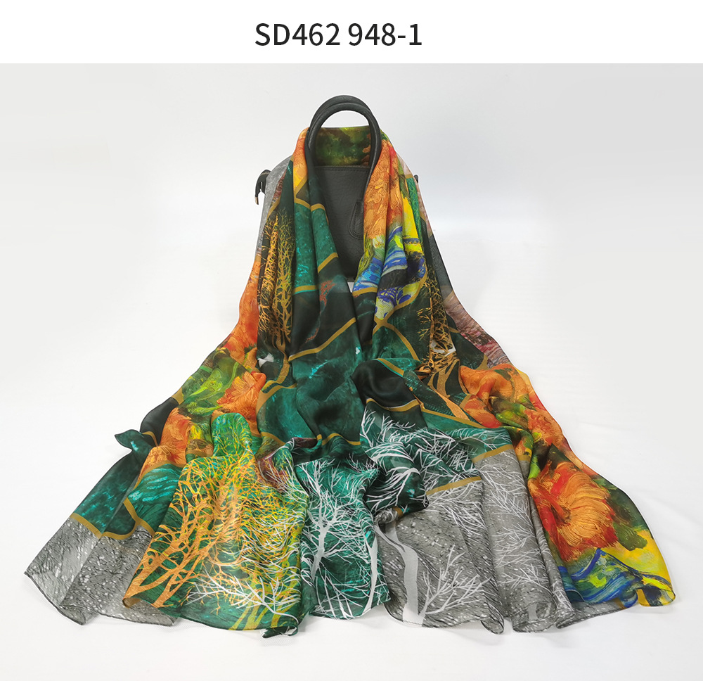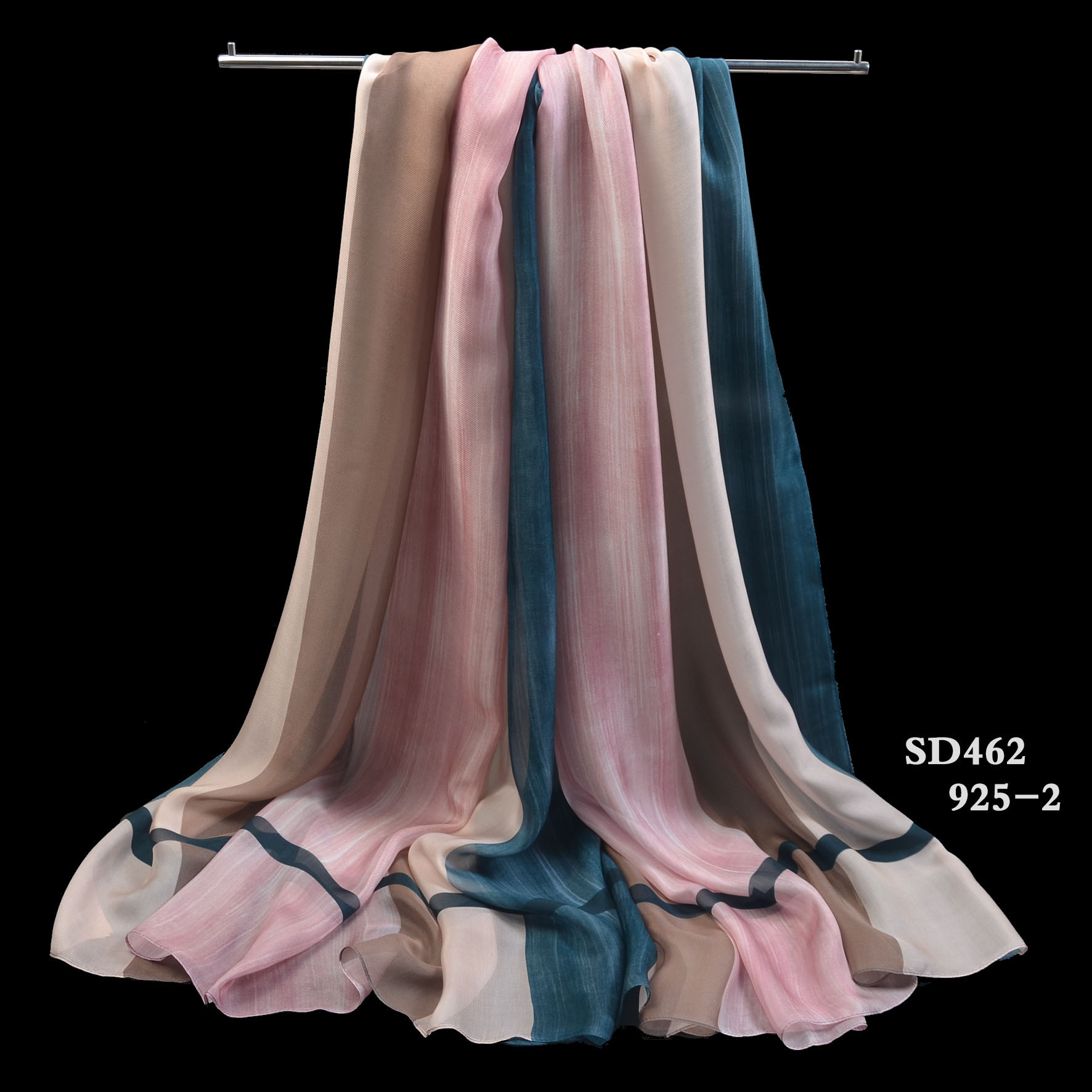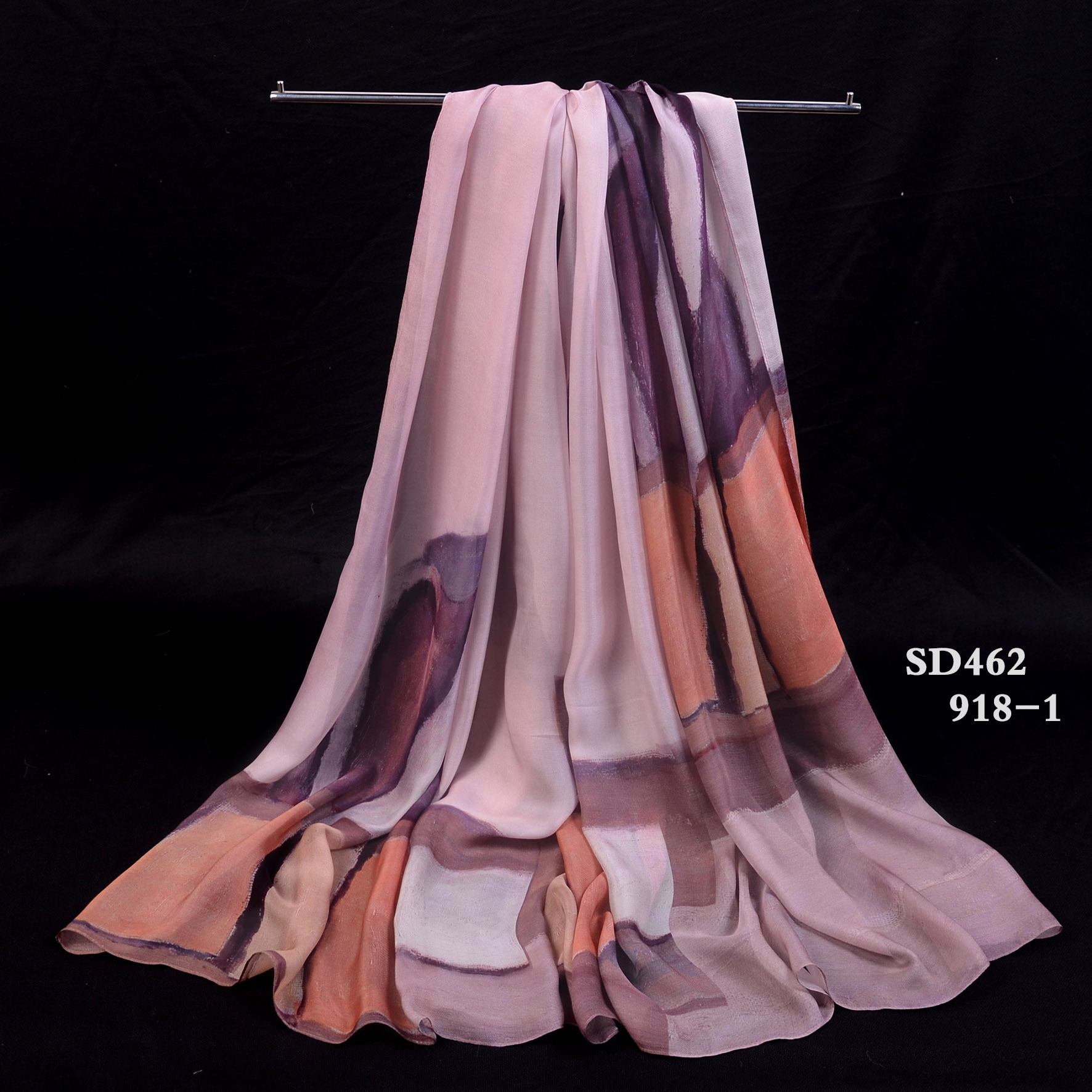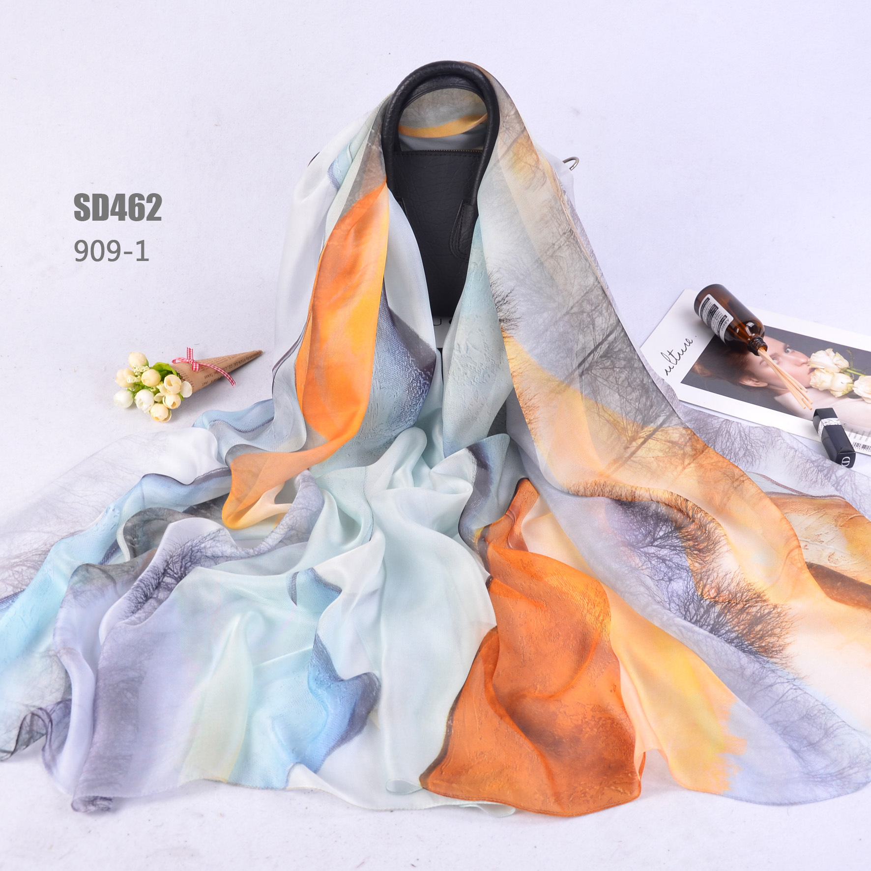 항저우 실크 봄과 가을 실크 스카프 도매 뽕나무 실크 스카프 여성 우아한 숄 디지털 인쇄 긴 스카프 재고
