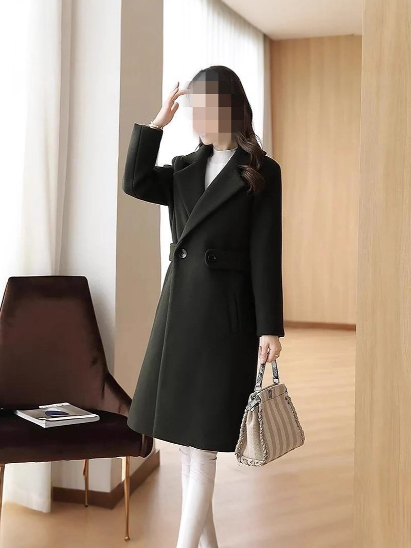 여성을 위한 한국식 모직 정장 재킷 중간 길이 2025 새로운 가을, 겨울 여성 허리 슬리밍 모직 코트스토어 가기