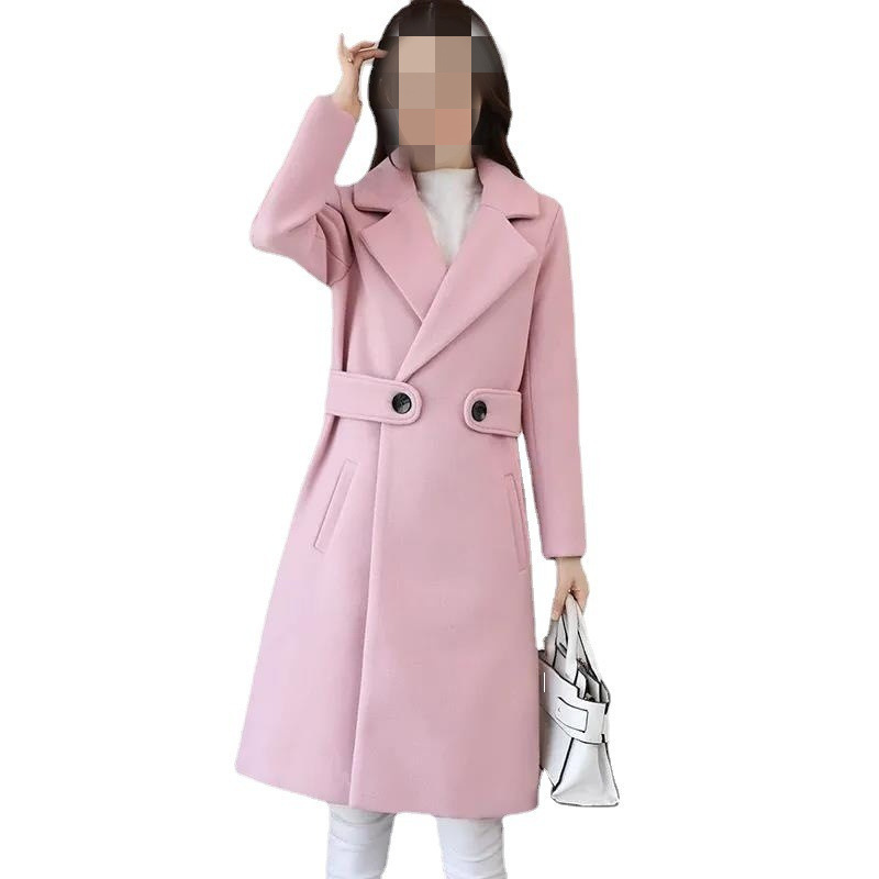 여성을 위한 한국식 모직 정장 재킷 중간 길이 2025 새로운 가을, 겨울 여성 허리 슬리밍 모직 코트