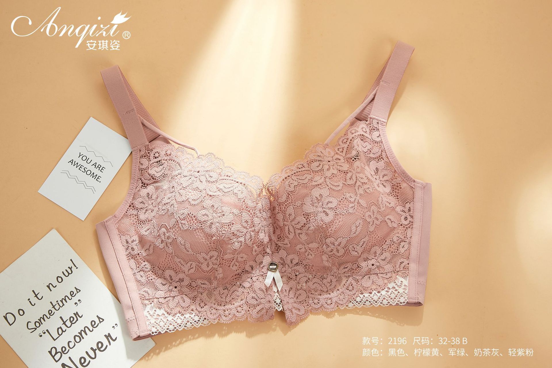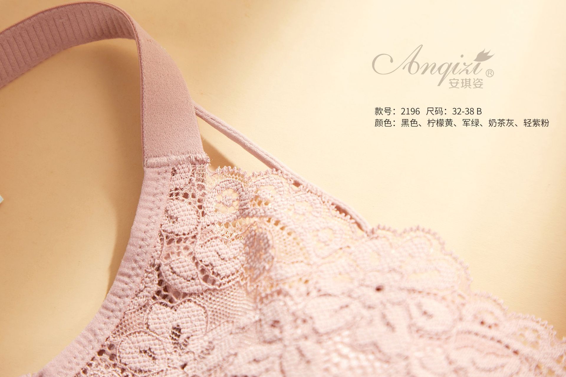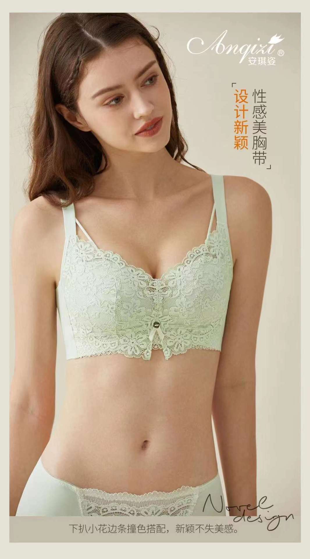 Anqi Zi 2196 # 레이스 가벼운 우유면 작은 가슴이 강철 반지를 밀어 올리지 않고 측면 뼈 브래지어 두꺼운 커버 여성용 속옷