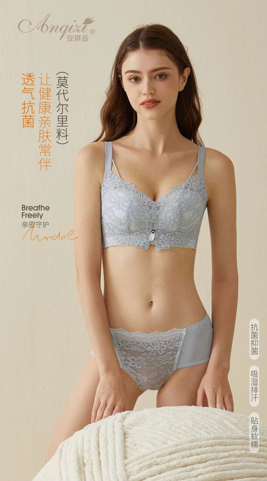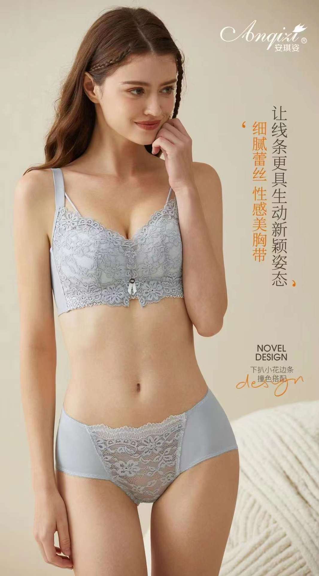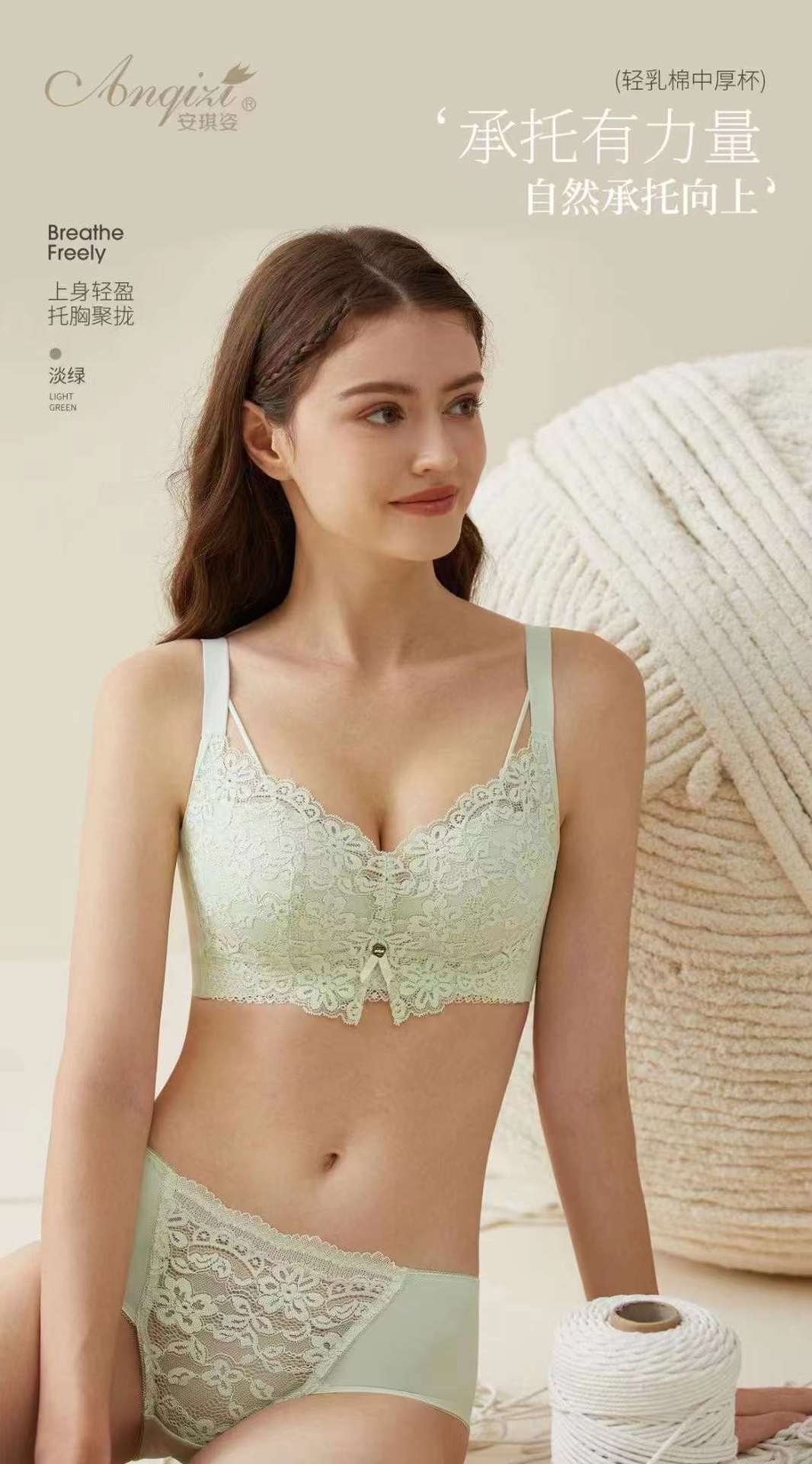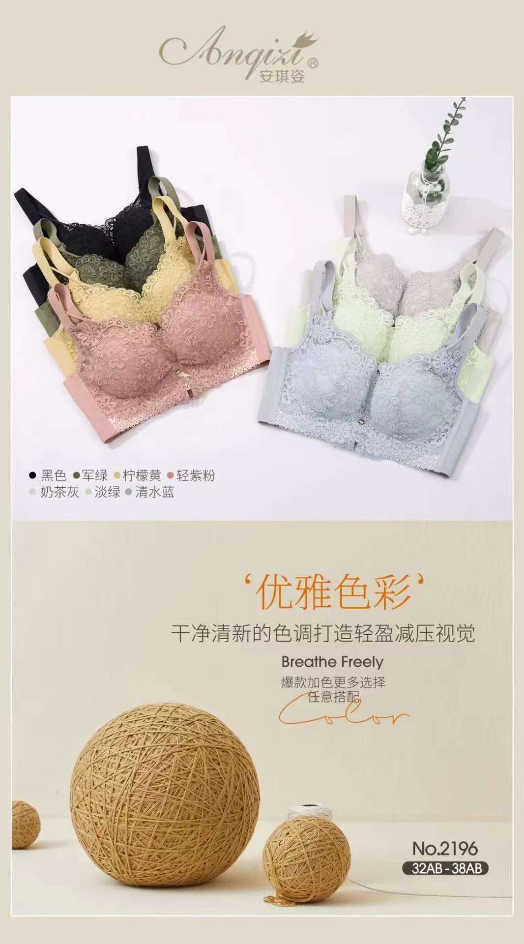 Anqi Zi 2196 # 레이스 가벼운 우유면 작은 가슴이 강철 반지를 밀어 올리지 않고 측면 뼈 브래지어 두꺼운 커버 여성용 속옷