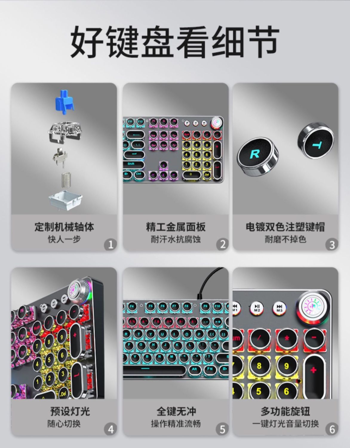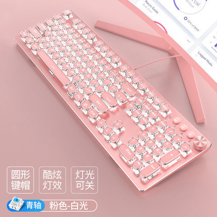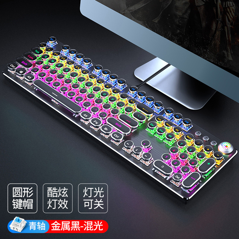 유선 키보드 TK100 레트로 스팀 펑크 게임 기계식 키보드 노브 녹색 축 게임 e 스포츠 키보드스토어 가기