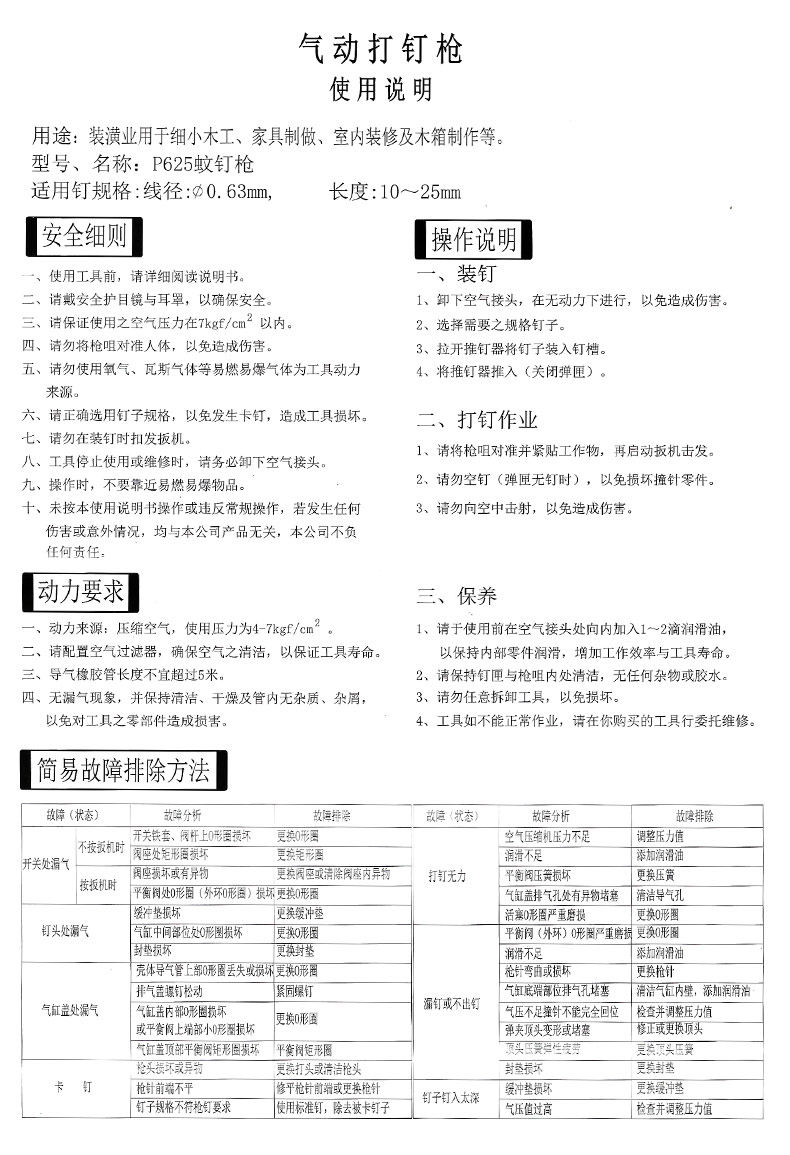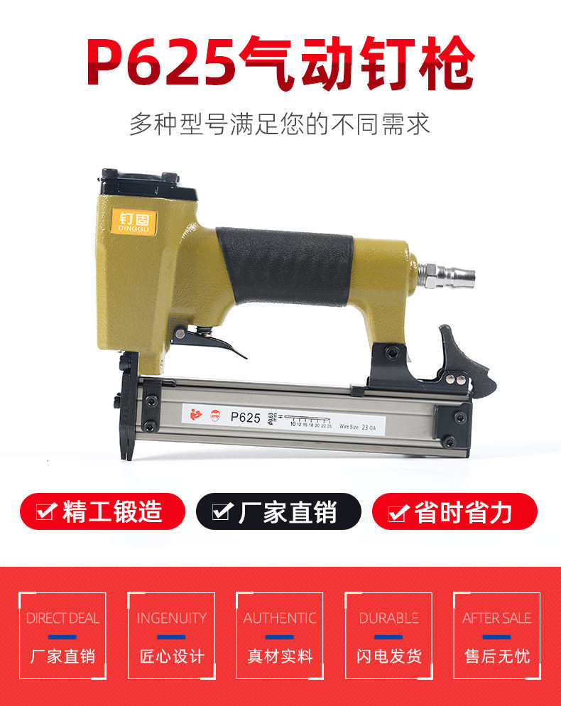 此产品为P625蚊钉枪,需要配备空压机 气管 接头 才可使用,可以用蚊钉型号为6/05  06 08 10 12 15 18 20 22 25 30  其他不适用,