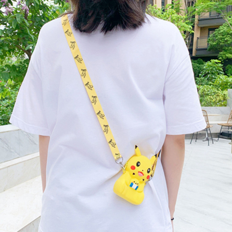 국경을 넘는 어린이용 숄더백 만화 피카츄 동전 지갑 포켓몬 실리콘 가방 크로스백 수납 지퍼