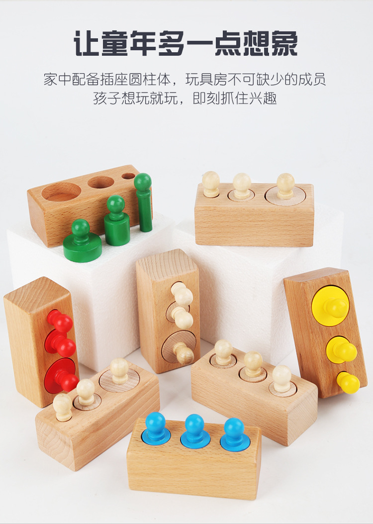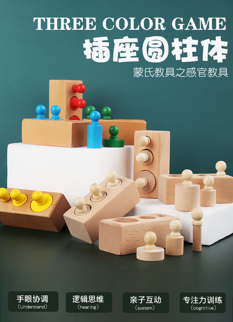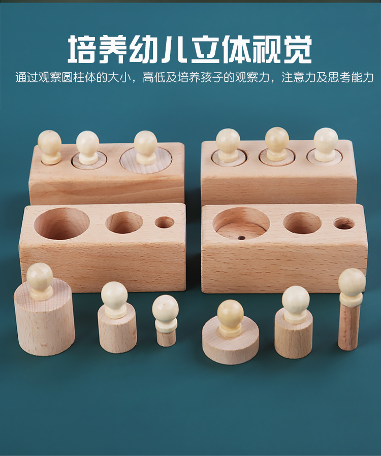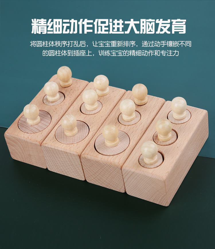 몬테소리 교구 소켓 원통형 어린이 조기 교육 퍼즐 몬테소리 나무 유치원 감각 훈련 장난감스토어 가기