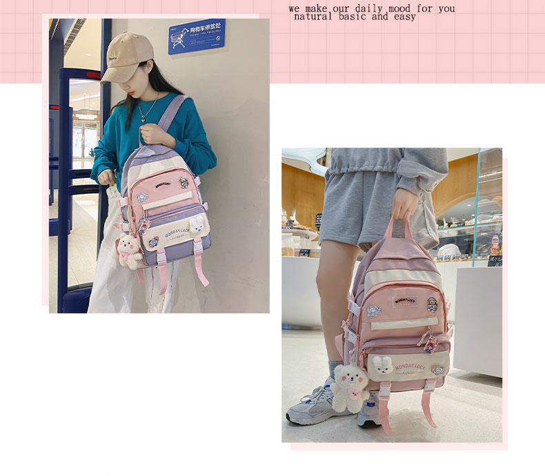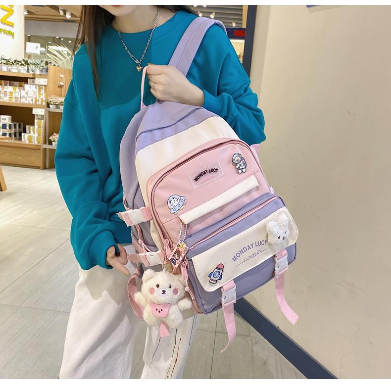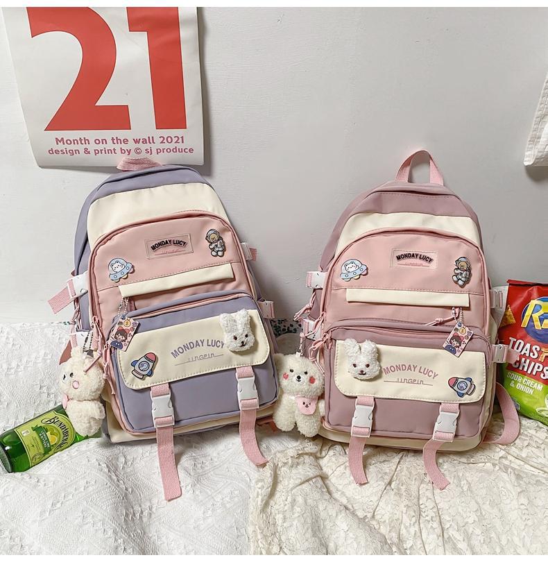 책가방 여성 스타일 귀여운 한국어 버전 고등학생 중학생 초등학생 3~5학년 및 6학년 배낭 배낭