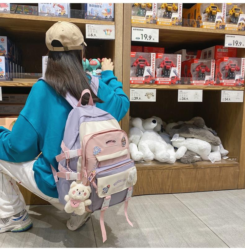 책가방 여성 스타일 귀여운 한국어 버전 고등학생 중학생 초등학생 3~5학년 및 6학년 배낭 배낭스토어 가기