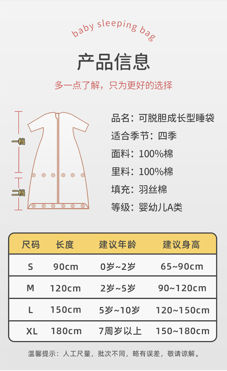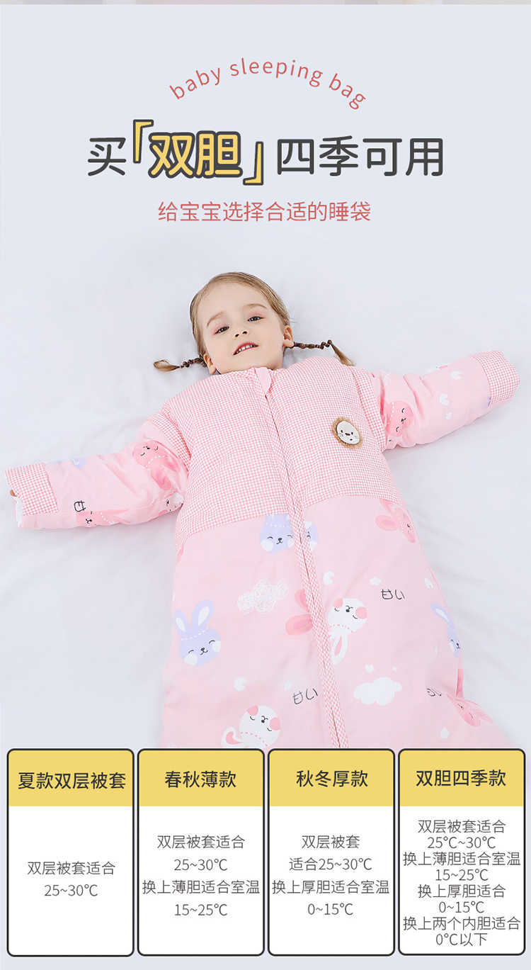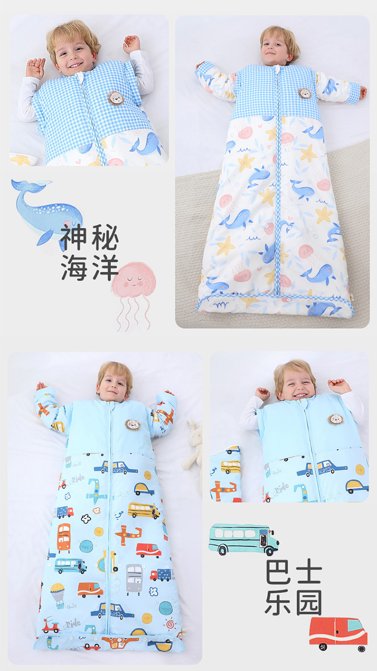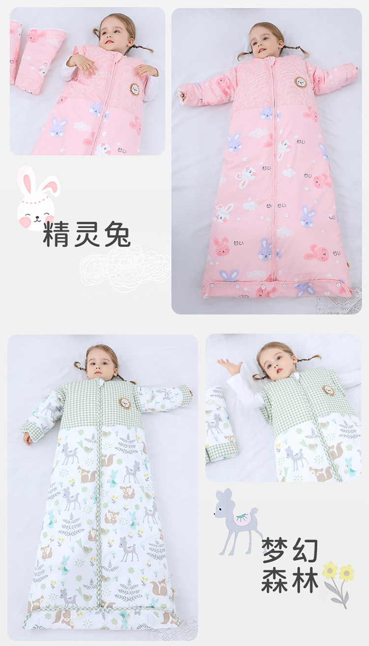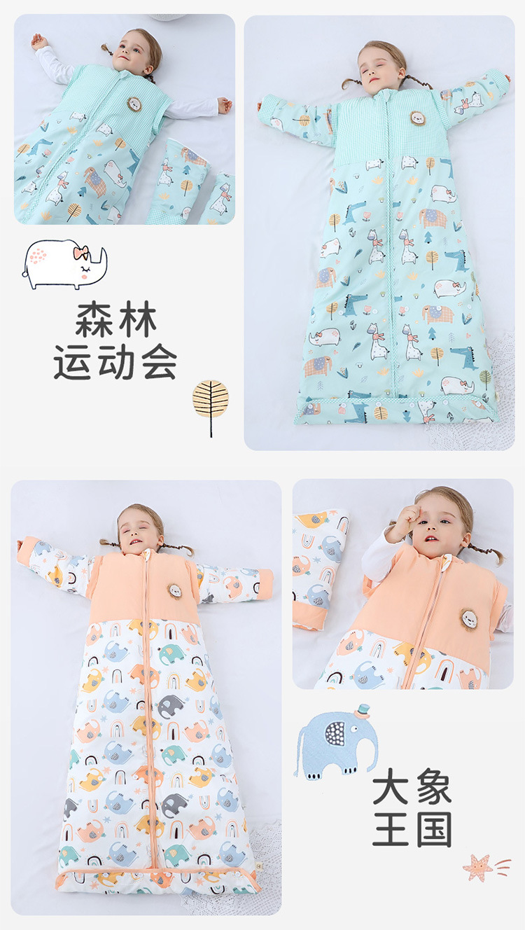 베이비 면 침낭 봄, 가을과 겨울 얇은 아기 중년 및 노인 아동용 두꺼운 킥 방지 이불 사계절 유니버설스토어 가기