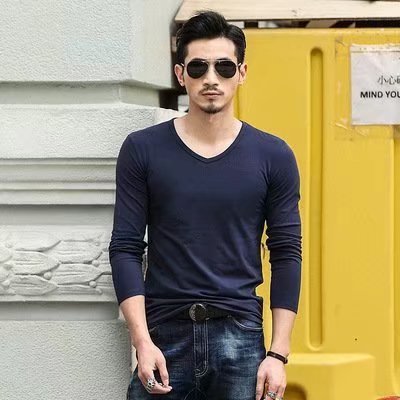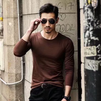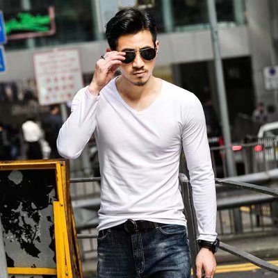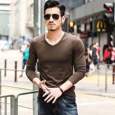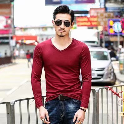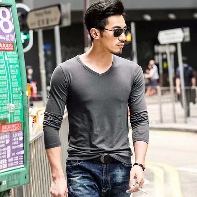 대외 무역 가을과 겨울 새로운 색상 남성용 긴팔 티셔츠 크루넥 슬림핏 베이스 셔츠 탑 학생 가을 옷 네트 V-넥스토어 가기