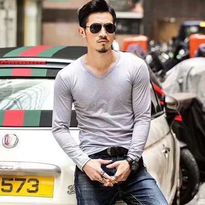 대외 무역 가을과 겨울 새로운 색상 남성용 긴팔 티셔츠 크루넥 슬림핏 베이스 셔츠 탑 학생 가을 옷 네트 V-넥