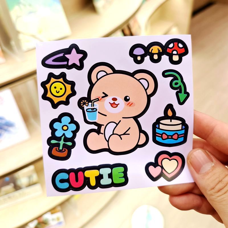 원래 만화 물 컵 백화점 스티커 귀여운 손 계정 스티커 방수 PVC 장식 작은 스티커 스티커스토어 가기