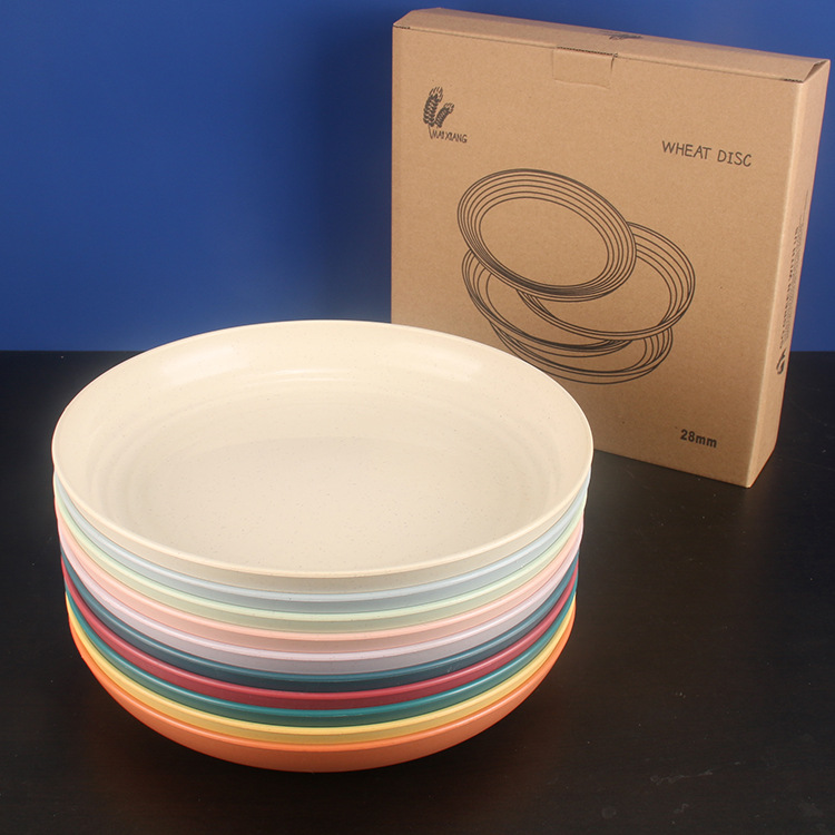 28cm 디스크 4 팩 밀 밀짚 케이크 접시 과일 접시 낙하 방지 가정용 디너 플레이트 레스토랑 접시 식기