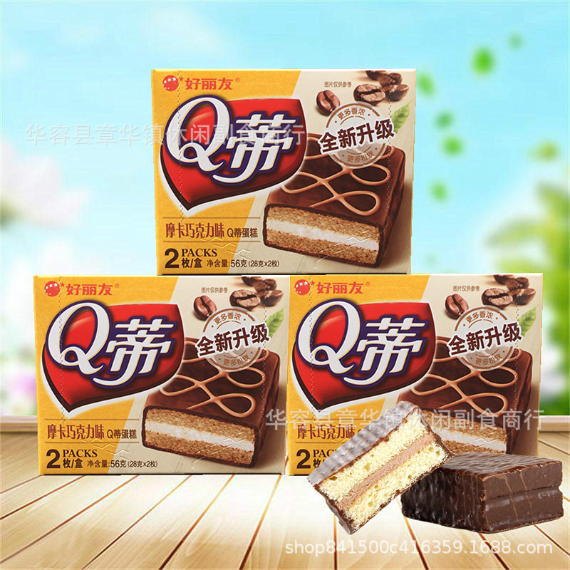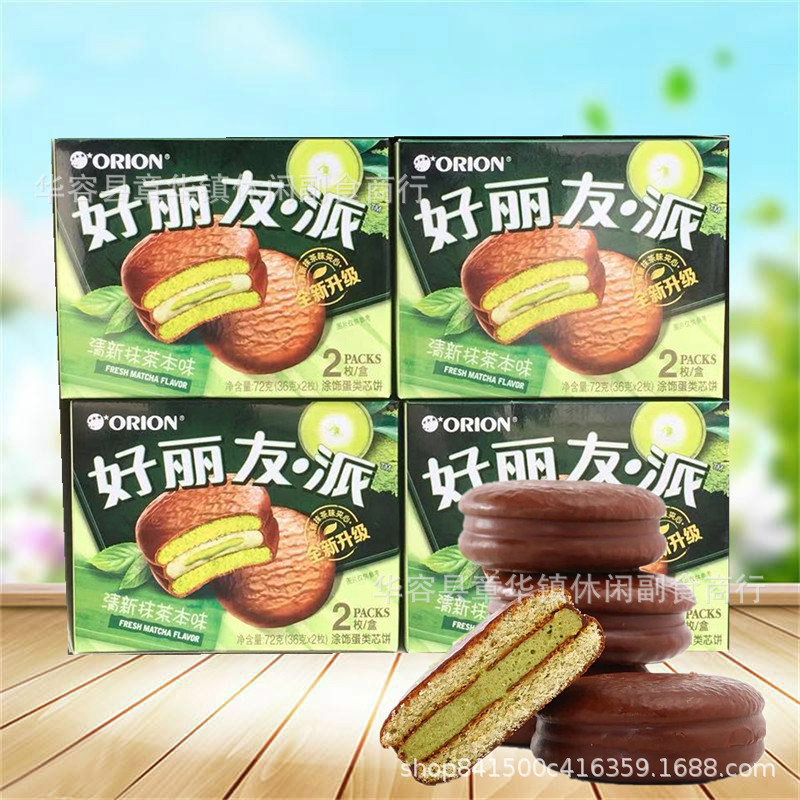规格口味选择说明:巧克力派1盒=68g(34g*2枚)/蛋黄派1盒=46g(23g*2枚)/ 摩卡味(榛子味)Q蒂巧克力味1盒=56g(28g*2枚)/清新抹茶本味1盒=72g(36g*2枚)/小鱼糯糯1盒=56g(28g*2枚)